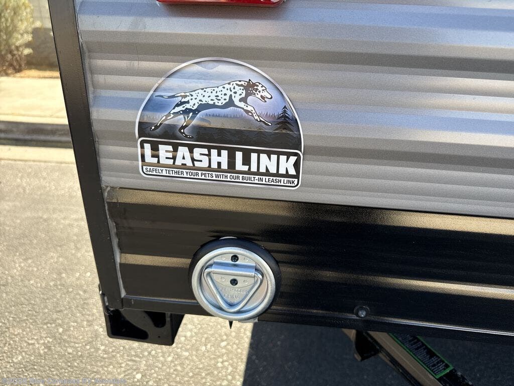 This cozy travel trailer can sleep five, so pack up and head out! You will have a queen bed up front to sleep on each night instead of an air mattress, and the little ones can take the 28" x 70" bunk beds! There is also a booth dinette here that can sleep an additional guest and is perfect for sharing meals during the day. The two burner cooktop and microwave oven means you won't have to cook over a campfire, and the private toilet and shower lets you clean up after a day outdoors. This model includes plenty of storage space, including bedroom storage, an exterior pass-through, plus additional outside storage beneath the bunks for hiking gear!