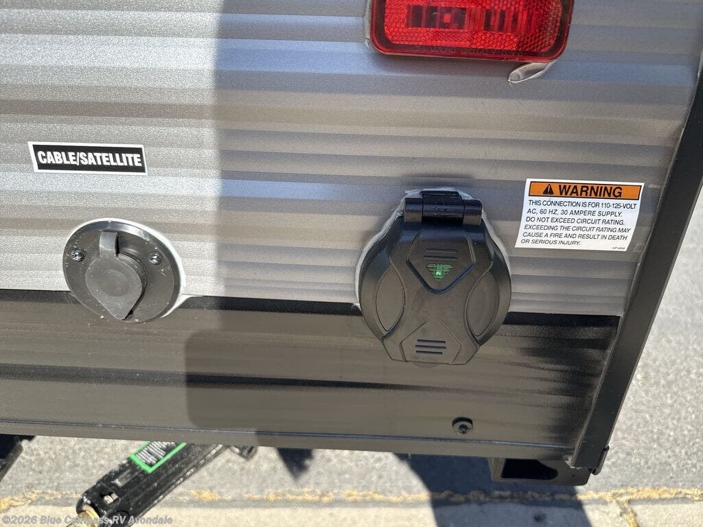 This cozy travel trailer can sleep five, so pack up and head out! You will have a queen bed up front to sleep on each night instead of an air mattress, and the little ones can take the 28" x 70" bunk beds! There is also a booth dinette here that can sleep an additional guest and is perfect for sharing meals during the day. The two burner cooktop and microwave oven means you won't have to cook over a campfire, and the private toilet and shower lets you clean up after a day outdoors. This model includes plenty of storage space, including bedroom storage, an exterior pass-through, plus additional outside storage beneath the bunks for hiking gear!