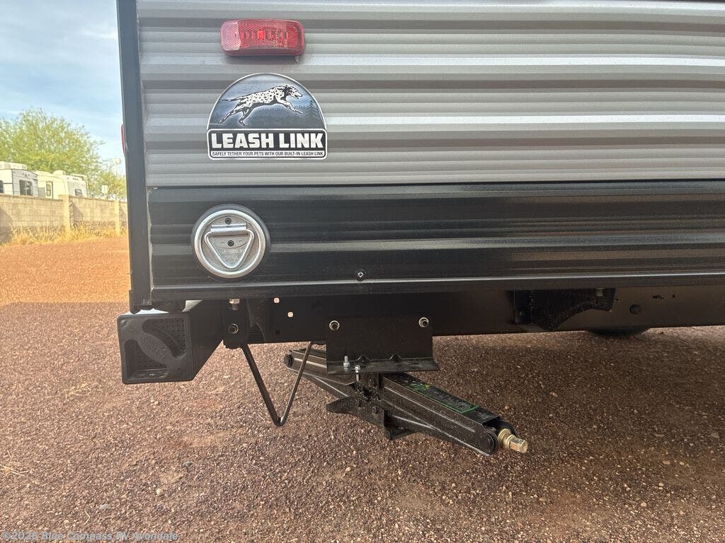 This cozy travel trailer can sleep five, so pack up and head out! You will have a queen bed up front to sleep on each night instead of an air mattress, and the little ones can take the 28" x 70" bunk beds! There is also a booth dinette here that can sleep an additional guest and is perfect for sharing meals during the day. The two burner cooktop and microwave oven means you won't have to cook over a campfire, and the private toilet and shower lets you clean up after a day outdoors. This model includes plenty of storage space, including bedroom storage, an exterior pass-through, plus additional outside storage beneath the bunks for hiking gear!