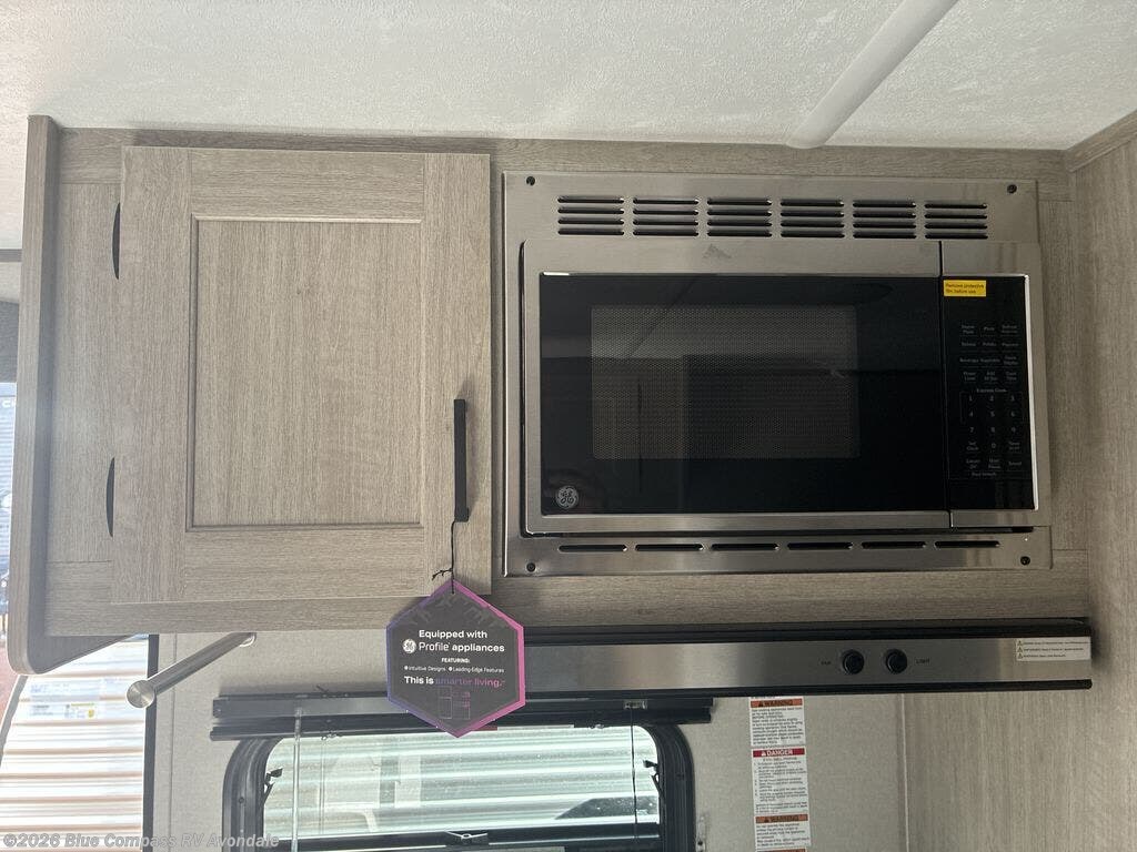 Comfortability, usability, and quality is what you will find in each one of these Forest River Aurora Light travel trailers! They are designed with a superior build and packed full with industry leading, functional, and distinctive standard features. The diamond plate rock guard will protect your unit from road debris and the nitrogen filled radial tires, which keep their pressure longer, offer better fuel economy. You will also find upgraded JBL Elite exterior speaker outside, an electric awning with multicolor lights and remote, plus flush mount baggage doors for easy packing. The interiors are beautifully designed with matte black kitchen and bath faucets, black nightshades in the living room, and GE kitchen appliances!