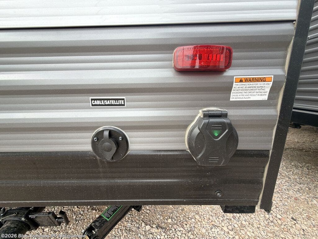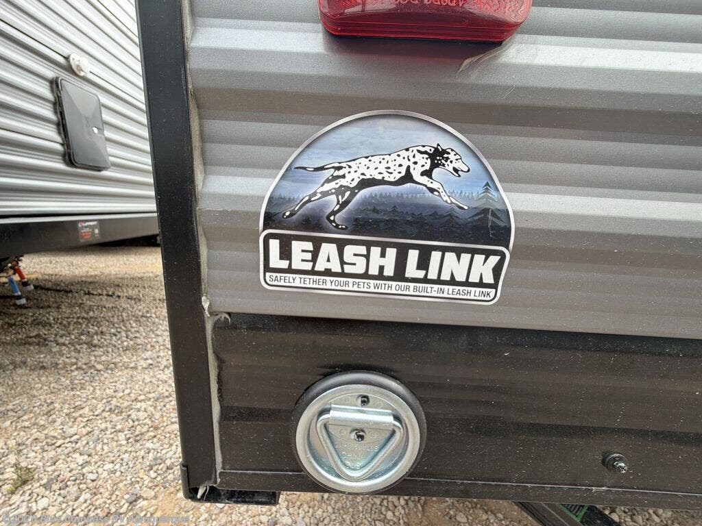 This cozy travel trailer can sleep five, so pack up and head out! You will have a queen bed up front to sleep on each night instead of an air mattress, and the little ones can take the 28" x 70" bunk beds! There is also a booth dinette here that can sleep an additional guest and is perfect for sharing meals during the day. The two burner cooktop and microwave oven means you won't have to cook over a campfire, and the private toilet and shower lets you clean up after a day outdoors. This model includes plenty of storage space, including bedroom storage, an exterior pass-through, plus additional outside storage beneath the bunks for hiking gear!