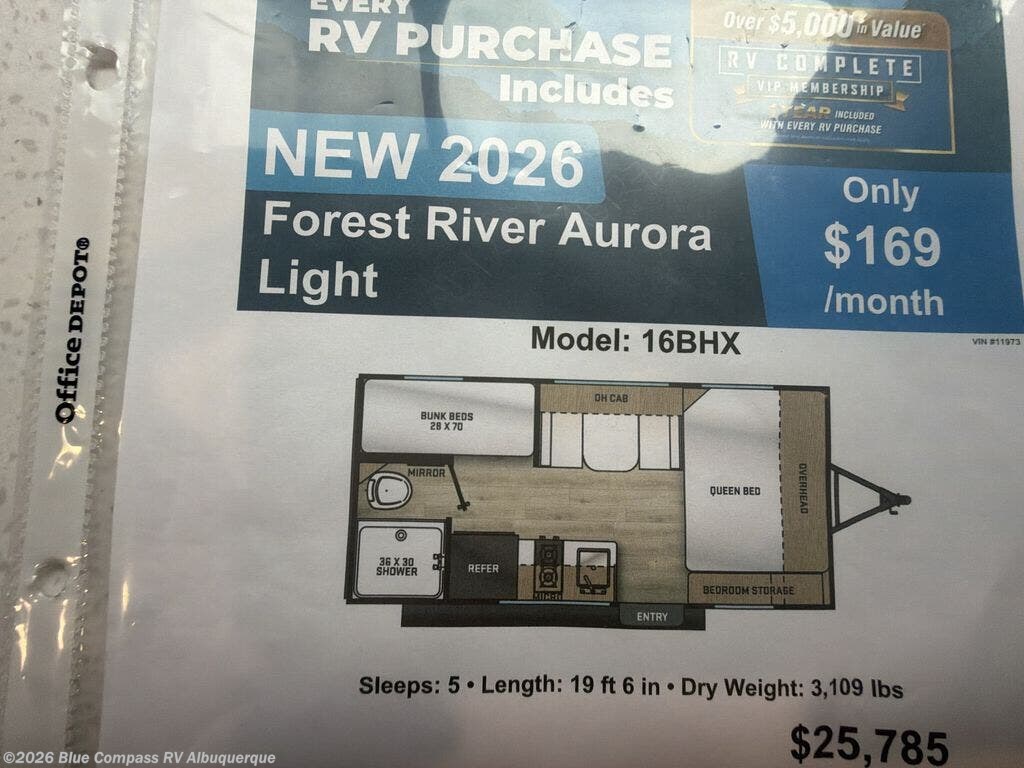 Request More Info on this 2026 Forest River Aurora Light 16BHX Offered for sale by Blue Compass RV Albuquerque