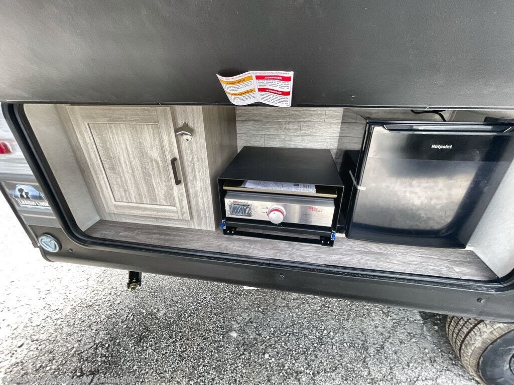 Comfortability, usability, and quality is what you will find in each one of these Forest River Aurora Light travel trailers! They are designed with a superior build and packed full with industry leading, functional, and distinctive standard features. The diamond plate rock guard will protect your unit from road debris and the nitrogen filled radial tires, which keep their pressure longer, offer better fuel economy. You will also find upgraded JBL Elite exterior speaker outside, an electric awning with multicolor lights and remote, plus flush mount baggage doors for easy packing. The interiors are beautifully designed with matte black kitchen and bath faucets, black nightshades in the living room, and GE kitchen appliances!