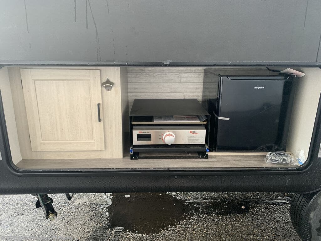 Comfortability, usability, and quality is what you will find in each one of these Forest River Aurora Light travel trailers! They are designed with a superior build and packed full with industry leading, functional, and distinctive standard features. The diamond plate rock guard will protect your unit from road debris and the nitrogen filled radial tires, which keep their pressure longer, offer better fuel economy. You will also find upgraded JBL Elite exterior speaker outside, an electric awning with multicolor lights and remote, plus flush mount baggage doors for easy packing. The interiors are beautifully designed with matte black kitchen and bath faucets, black nightshades in the living room, and GE kitchen appliances!