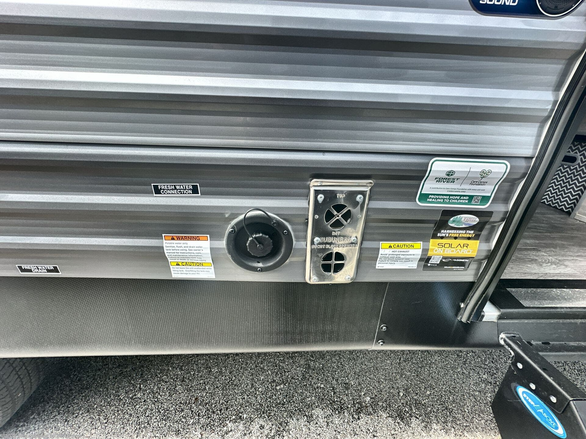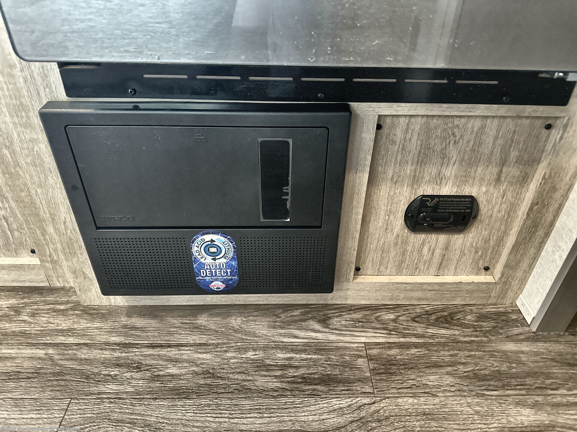 Comfortability, usability, and quality is what you will find in each one of these Forest River Aurora Light travel trailers! They are designed with a superior build and packed full with industry leading, functional, and distinctive standard features. The diamond plate rock guard will protect your unit from road debris and the nitrogen filled radial tires, which keep their pressure longer, offer better fuel economy. You will also find upgraded JBL Elite exterior speaker outside, an electric awning with multicolor lights and remote, plus flush mount baggage doors for easy packing. The interiors are beautifully designed with matte black kitchen and bath faucets, black nightshades in the living room, and GE kitchen appliances!
