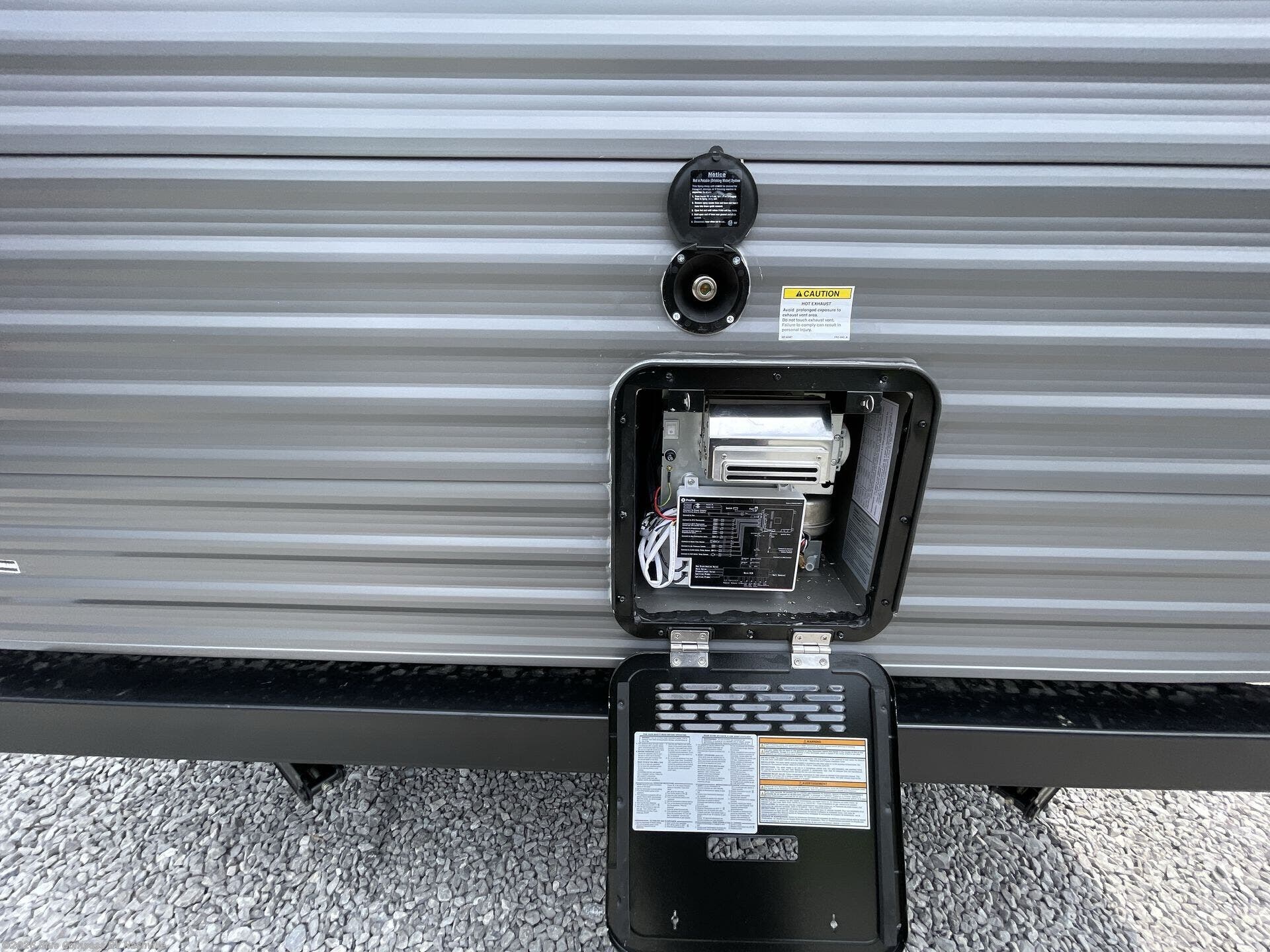 Your family or group will have a fun time camping in this travel trailer! The front Murphy bed provides versatility with a sofa to sit on during the day and a 60" x 74" bed to sleep on at night. The U-shaped dinette slide creates more interior space, a comfortable place to eat, and even an extra sleeping space for a guest or two depending on their sizes. The 46" x 74" double-size bunk beds are also a comfortable place to rest, and they are conveniently next to the rear corner bathroom. If you wish to cook out in the great outdoors then add the optional camper kitchen which comes with a cabinet, a refrigerator, and a pull out griddle!