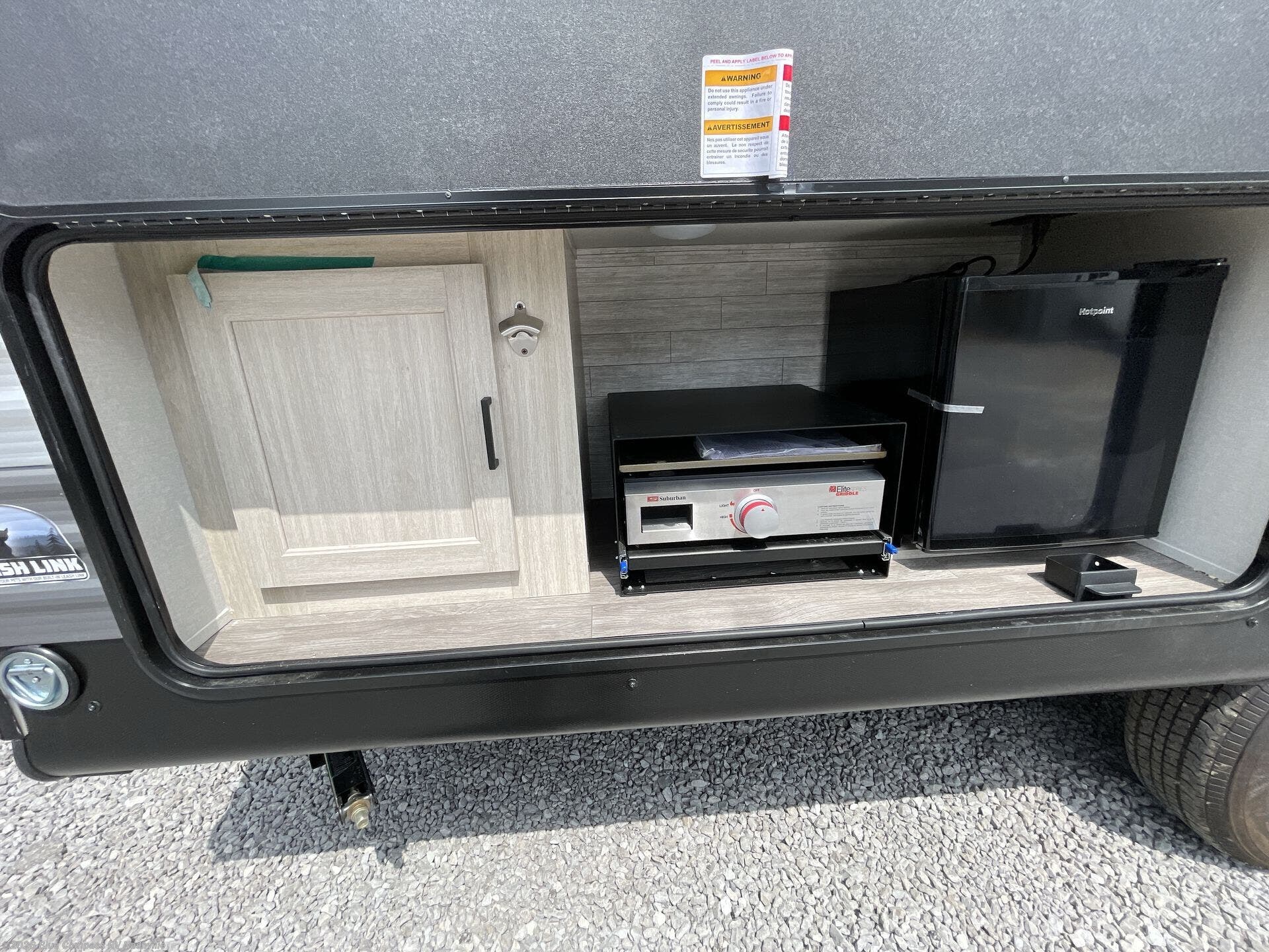 Comfortability, usability, and quality is what you will find in each one of these Forest River Aurora Light travel trailers! They are designed with a superior build and packed full with industry leading, functional, and distinctive standard features. The diamond plate rock guard will protect your unit from road debris and the nitrogen filled radial tires, which keep their pressure longer, offer better fuel economy. You will also find upgraded JBL Elite exterior speaker outside, an electric awning with multicolor lights and remote, plus flush mount baggage doors for easy packing. The interiors are beautifully designed with matte black kitchen and bath faucets, black nightshades in the living room, and GE kitchen appliances!