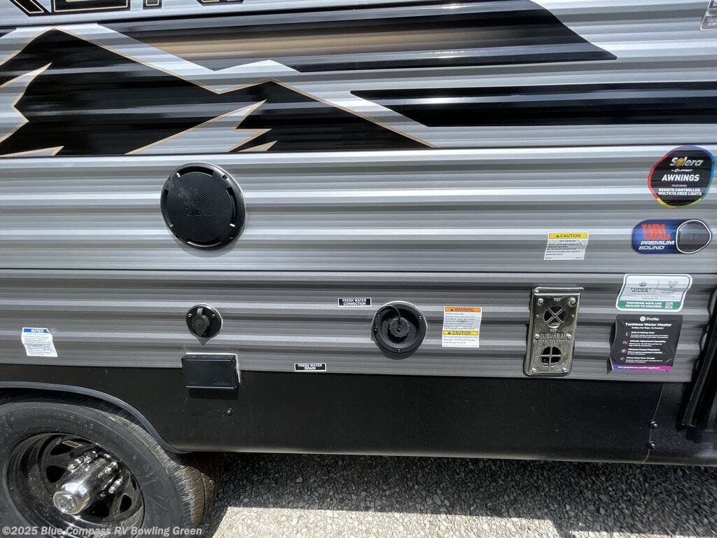 Comfortability, usability, and quality is what you will find in each one of these Forest River Aurora Light travel trailers! They are designed with a superior build and packed full with industry leading, functional, and distinctive standard features. The diamond plate rock guard will protect your unit from road debris and the nitrogen filled radial tires, which keep their pressure longer, offer better fuel economy. You will also find upgraded JBL Elite exterior speaker outside, an electric awning with multicolor lights and remote, plus flush mount baggage doors for easy packing. The interiors are beautifully designed with matte black kitchen and bath faucets, black nightshades in the living room, and GE kitchen appliances!