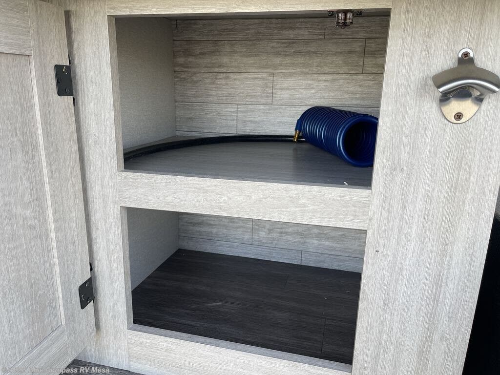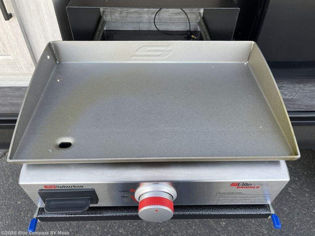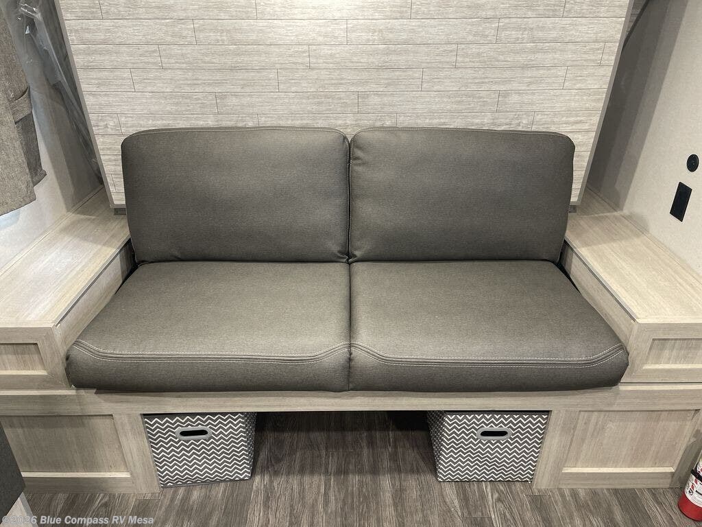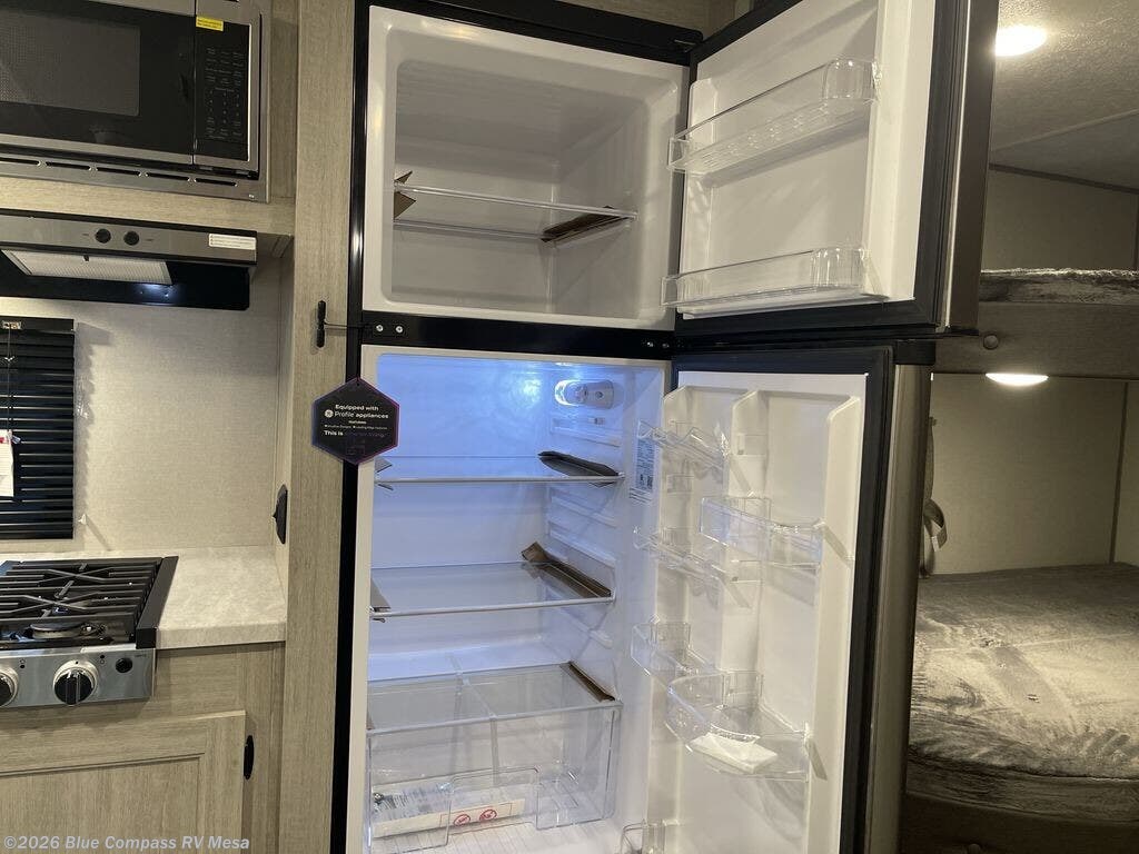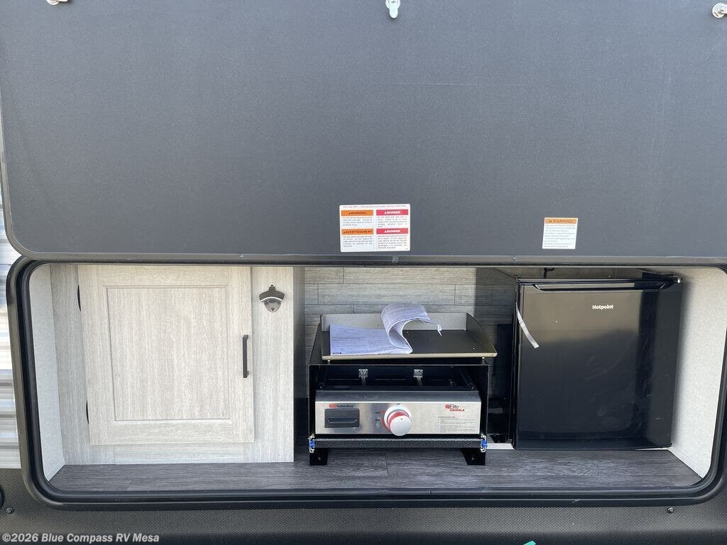 Your family or group will have a fun time camping in this travel trailer! The front Murphy bed provides versatility with a sofa to sit on during the day and a 60" x 74" bed to sleep on at night. The U-shaped dinette slide creates more interior space, a comfortable place to eat, and even an extra sleeping space for a guest or two depending on their sizes. The 46" x 74" double-size bunk beds are also a comfortable place to rest, and they are conveniently next to the rear corner bathroom. If you wish to cook out in the great outdoors then add the optional camper kitchen which comes with a cabinet, a refrigerator, and a pull out griddle!