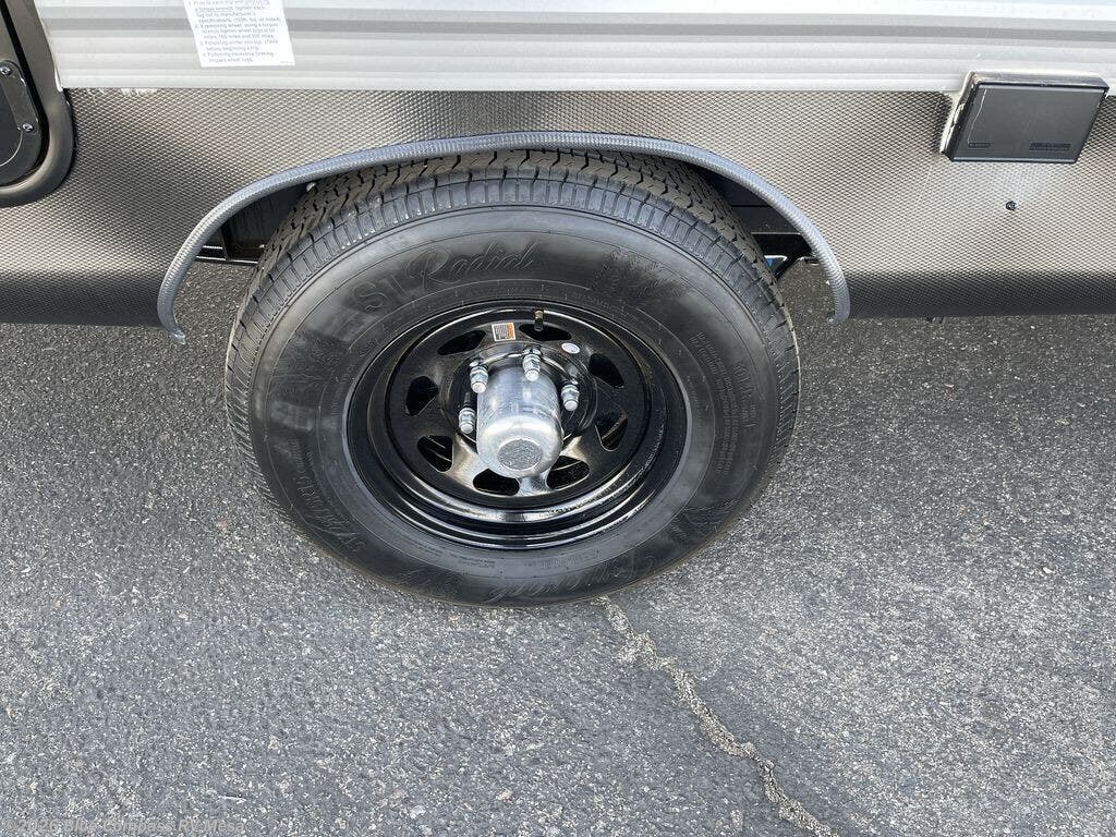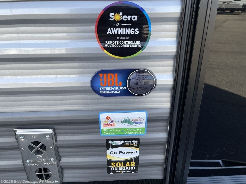 Comfortability, usability, and quality is what you will find in each one of these Forest River Aurora Light travel trailers! They are designed with a superior build and packed full with industry leading, functional, and distinctive standard features. The diamond plate rock guard will protect your unit from road debris and the nitrogen filled radial tires, which keep their pressure longer, offer better fuel economy. You will also find upgraded JBL Elite exterior speaker outside, an electric awning with multicolor lights and remote, plus flush mount baggage doors for easy packing. The interiors are beautifully designed with matte black kitchen and bath faucets, black nightshades in the living room, and GE kitchen appliances!