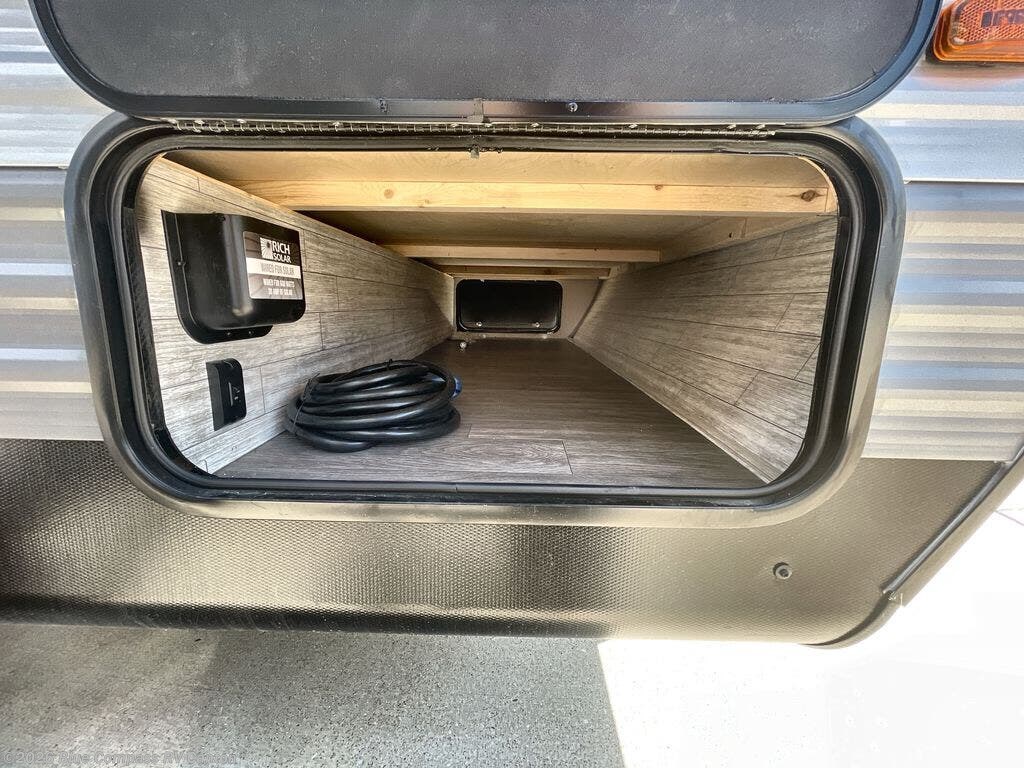 Comfortability, usability, and quality is what you will find in each one of these Forest River Aurora Light travel trailers! They are designed with a superior build and packed full with industry leading, functional, and distinctive standard features. The diamond plate rock guard will protect your unit from road debris and the nitrogen filled radial tires, which keep their pressure longer, offer better fuel economy. You will also find upgraded JBL Elite exterior speaker outside, an electric awning with multicolor lights and remote, plus flush mount baggage doors for easy packing. The interiors are beautifully designed with matte black kitchen and bath faucets, black nightshades in the living room, and GE kitchen appliances!