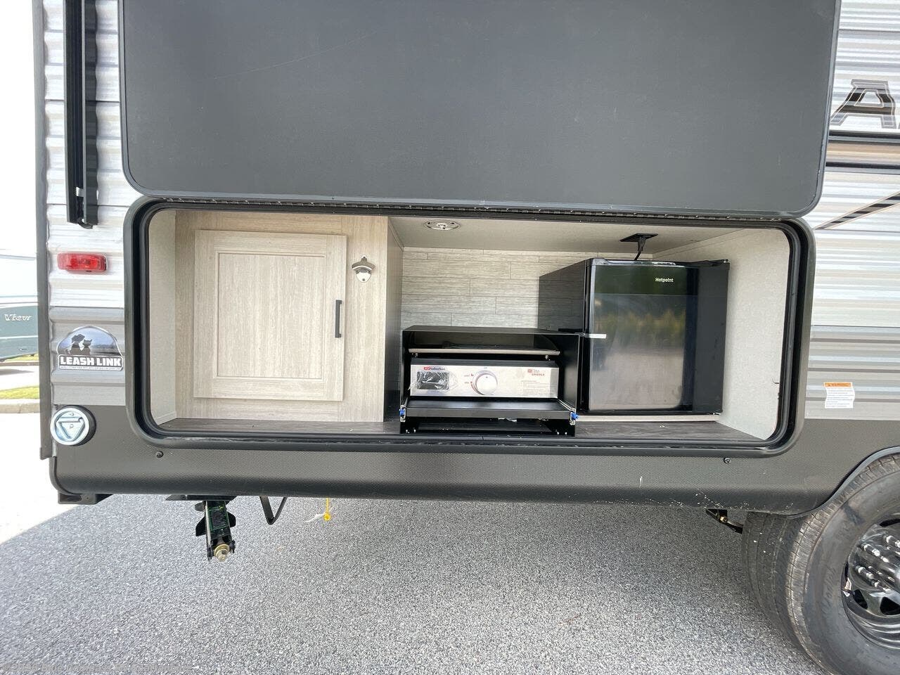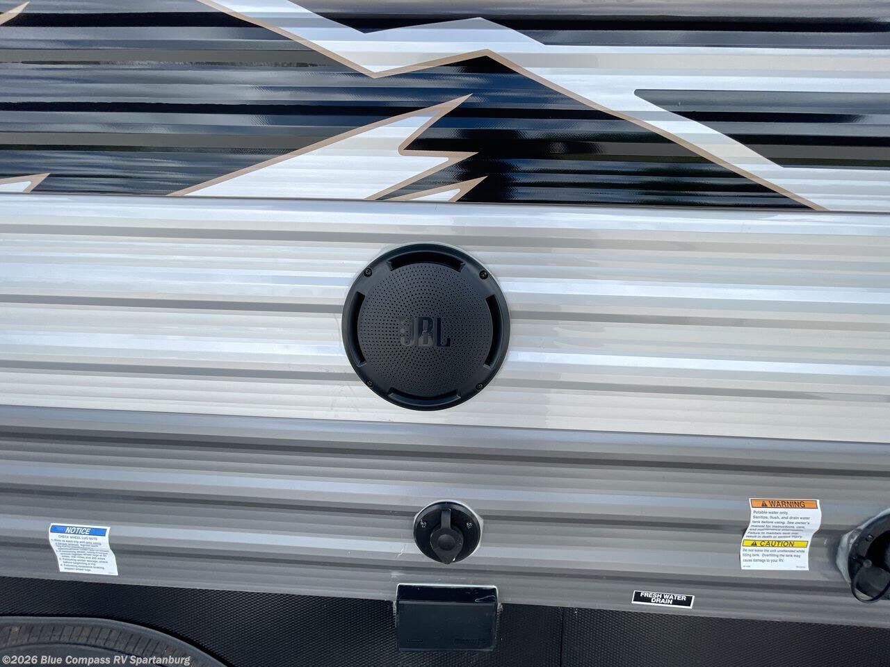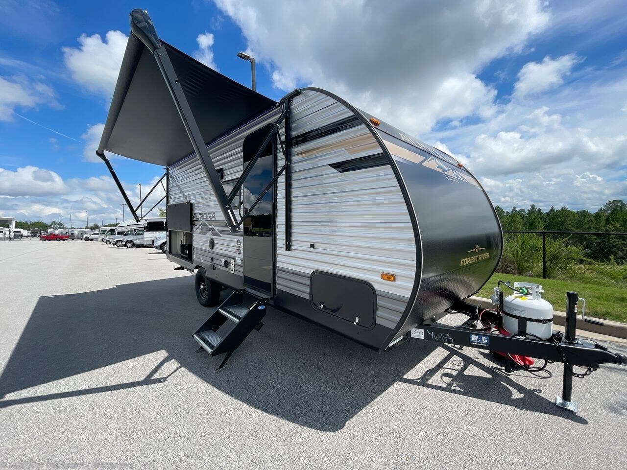 Comfortability, usability, and quality is what you will find in each one of these Forest River Aurora Light travel trailers! They are designed with a superior build and packed full with industry leading, functional, and distinctive standard features. The diamond plate rock guard will protect your unit from road debris and the nitrogen filled radial tires, which keep their pressure longer, offer better fuel economy. You will also find upgraded JBL Elite exterior speaker outside, an electric awning with multicolor lights and remote, plus flush mount baggage doors for easy packing. The interiors are beautifully designed with matte black kitchen and bath faucets, black nightshades in the living room, and GE kitchen appliances!