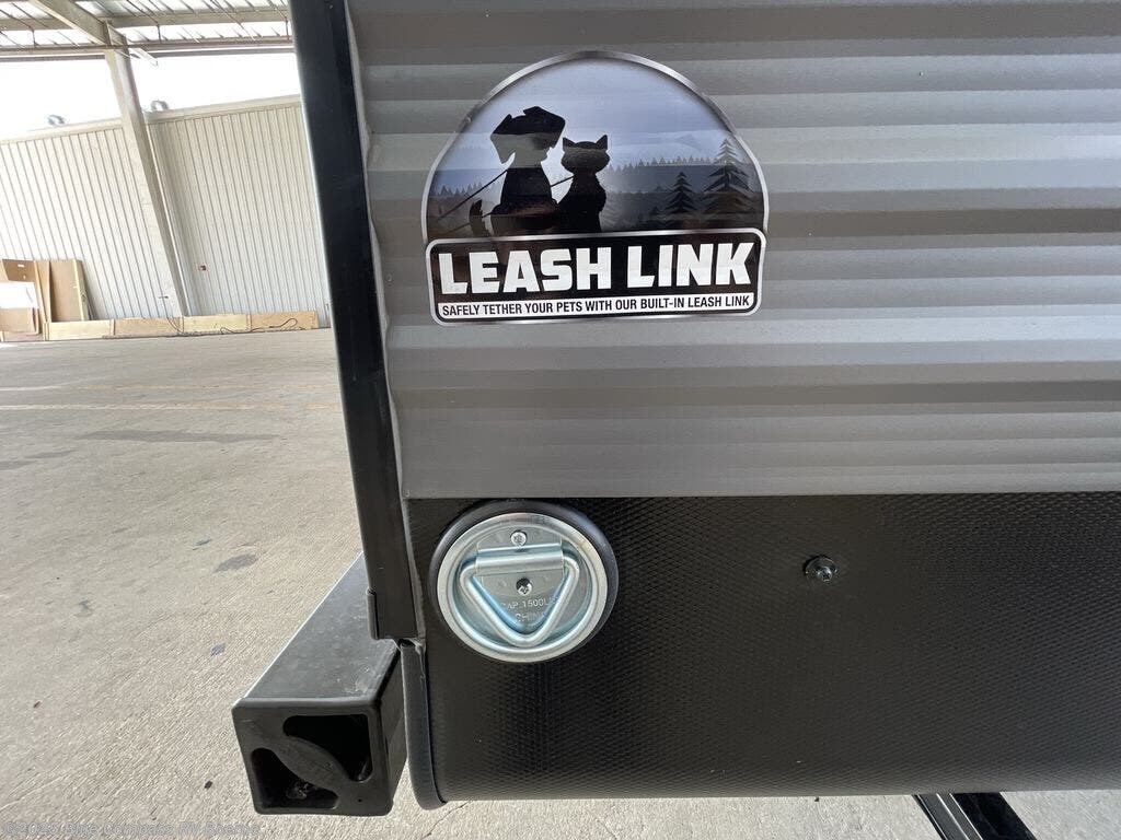 Pack your bags and head to your favorite camping spot with this travel trailer in tow! You can relax on the theater seating slide, dine around the rear U-shaped dinette, or visit outdoors under the 18' power awning. There is also a pass-thru storage outside to bring along fishing poles, camp chairs, and yard games. A full kitchen includes a three burner gas range and microwave oven, along with a 10.7 cu. ft. 12V refrigerator and pantry for food storage. The walk-thru bath will create a front master bedroom you are sure to love, especially with its queen bed, dual bedside wardrobes and an overhead shelf for storage!