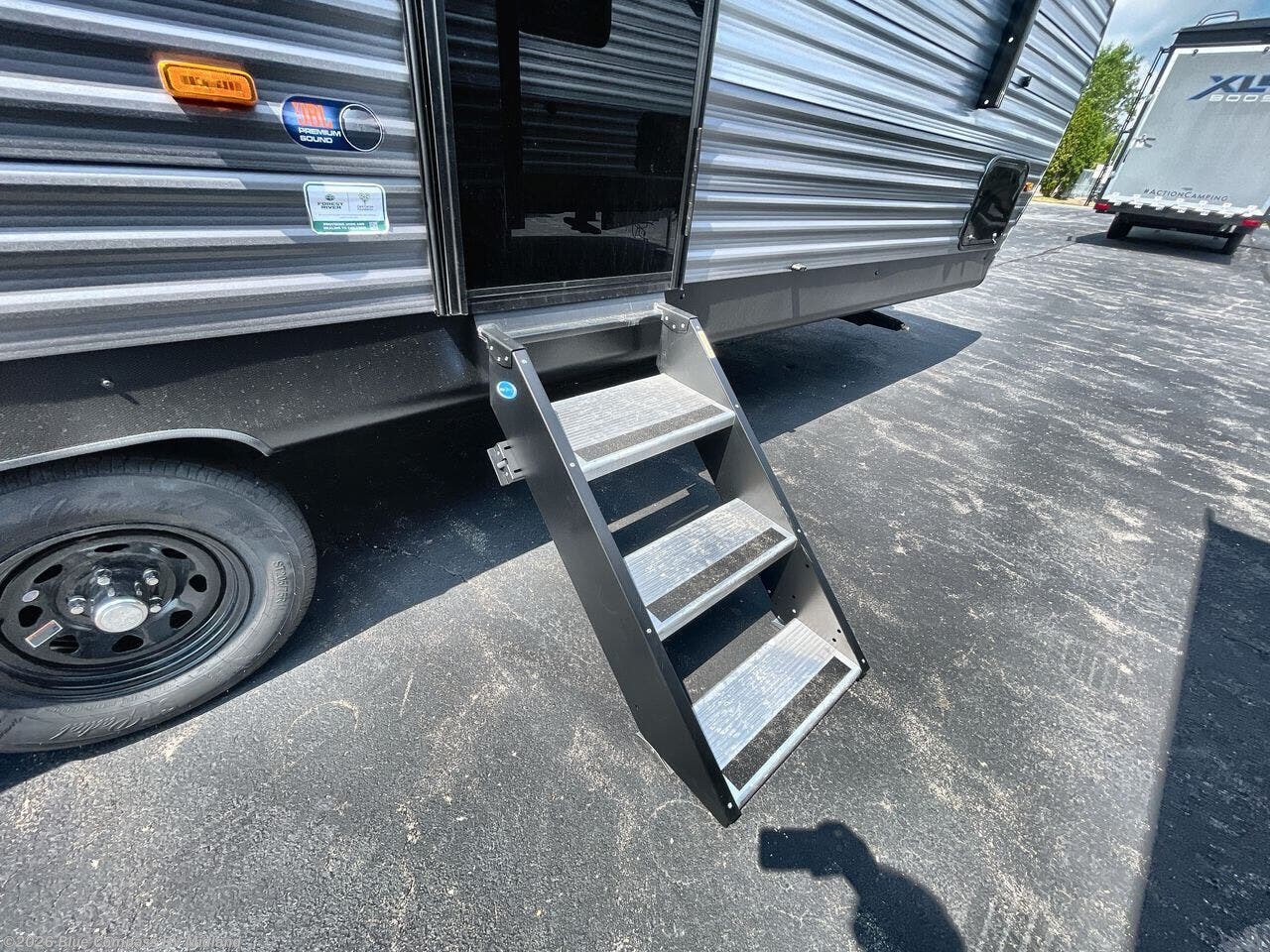 Comfortability, usability, and quality is what you will find in each one of these Forest River Aurora Light travel trailers! They are designed with a superior build and packed full with industry leading, functional, and distinctive standard features. The diamond plate rock guard will protect your unit from road debris and the nitrogen filled radial tires, which keep their pressure longer, offer better fuel economy. You will also find upgraded JBL Elite exterior speaker outside, an electric awning with multicolor lights and remote, plus flush mount baggage doors for easy packing. The interiors are beautifully designed with matte black kitchen and bath faucets, black nightshades in the living room, and GE kitchen appliances!