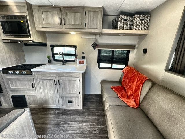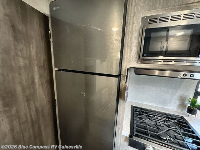 Comfortability, usability, and quality is what you will find in each one of these Forest River Aurora Light travel trailers! They are designed with a superior build and packed full with industry leading, functional, and distinctive standard features. The diamond plate rock guard will protect your unit from road debris and the nitrogen filled radial tires, which keep their pressure longer, offer better fuel economy. You will also find upgraded JBL Elite exterior speaker outside, an electric awning with multicolor lights and remote, plus flush mount baggage doors for easy packing. The interiors are beautifully designed with matte black kitchen and bath faucets, black nightshades in the living room, and GE kitchen appliances!