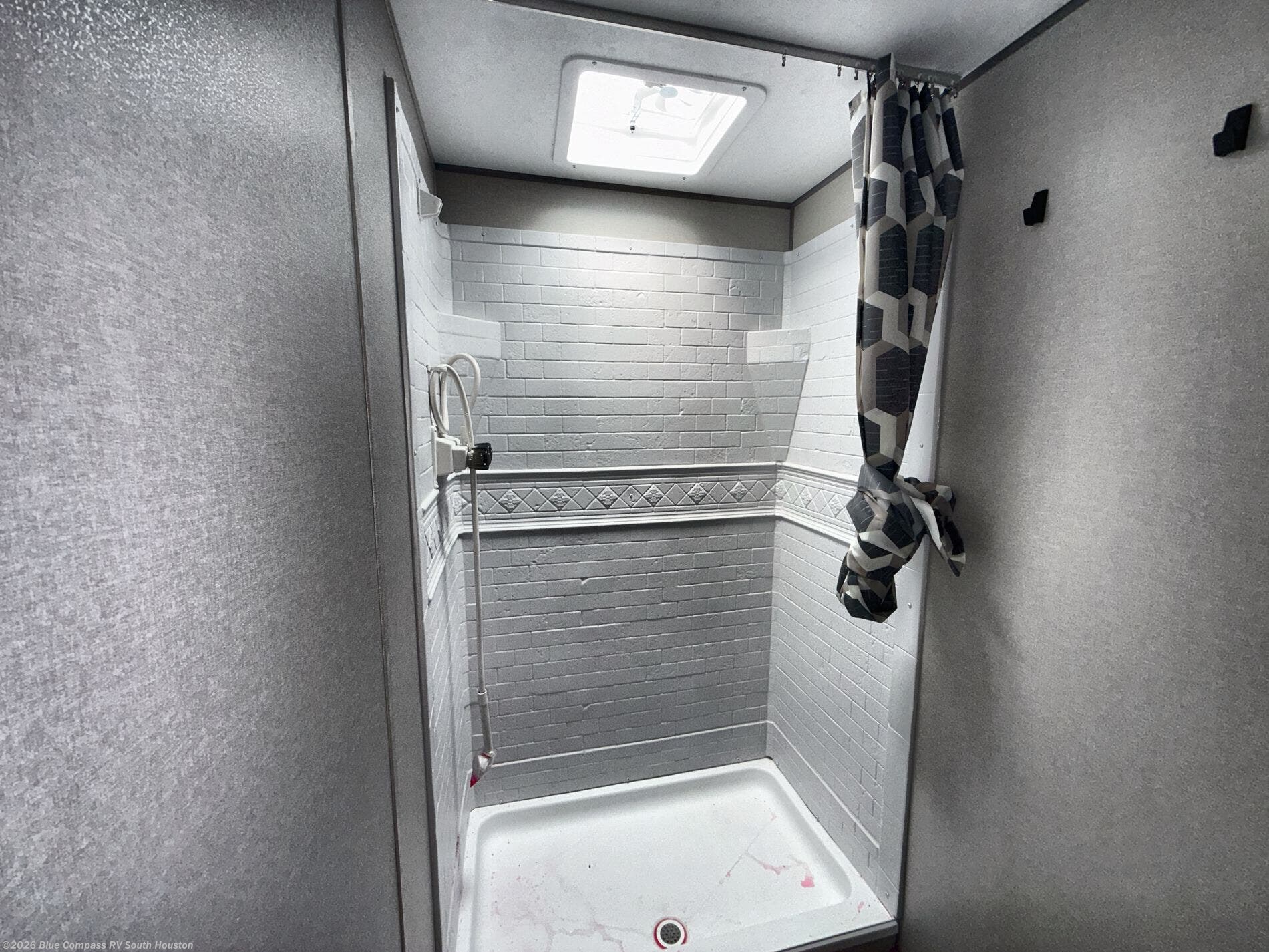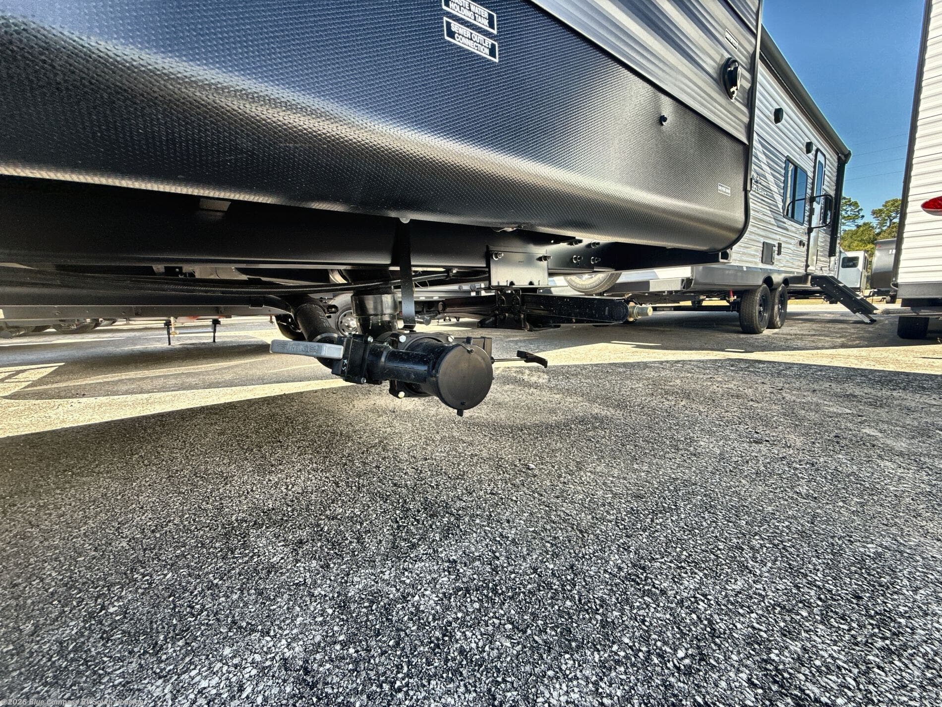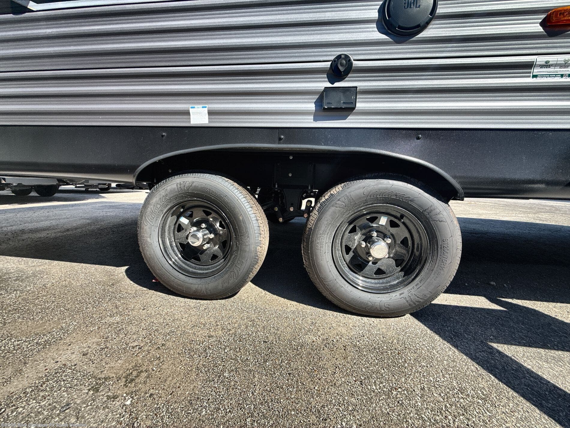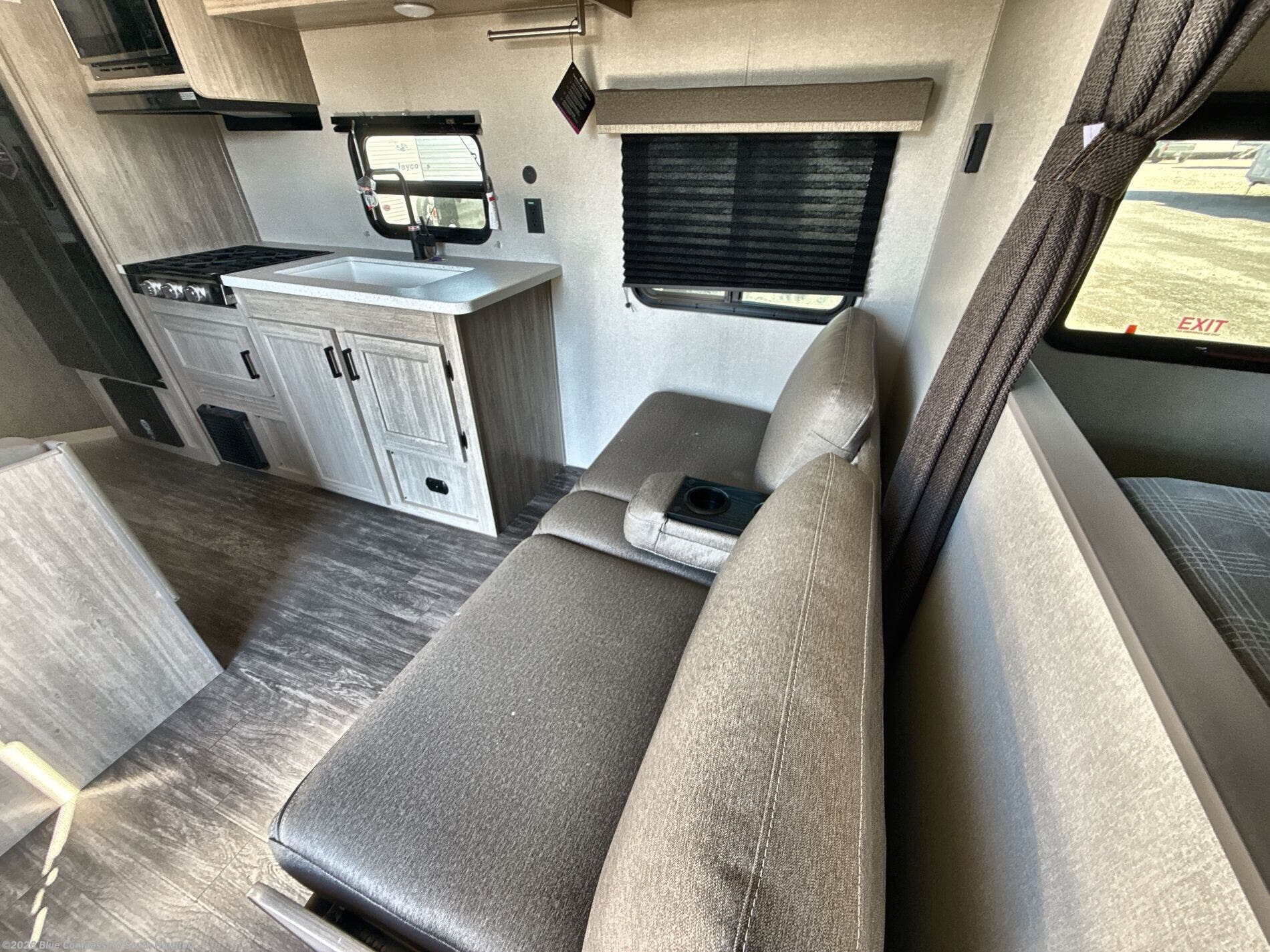 Pack your bags and head out on a fun weekend camping trip with this travel trailer! Whether you have a small family or a few guests wanting to come along, there will be enough sleeping spaces between the double-size bunk beds, the 60" x 74" queen bed in the front semi-private bedroom, and even the booth dinette. The chef can prepare meals indoors using the three burner cooktop or microwave oven, and there is a 12V 10.7 cu. ft. refrigerator for perishables. There is plenty of storage throughout with the overhead cabinets and wardrobes, as well as outside with the front pass-through storage area!