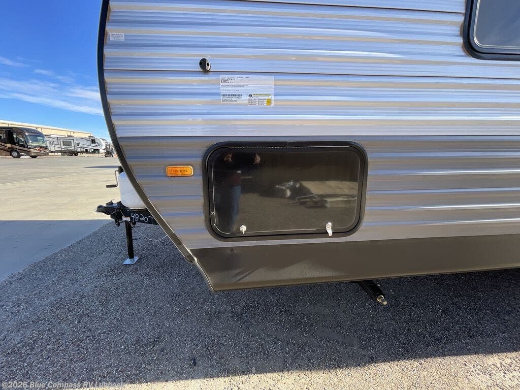 Pack your bags and head out on a fun weekend camping trip with this travel trailer! Whether you have a small family or a few guests wanting to come along, there will be enough sleeping spaces between the double-size bunk beds, the 60" x 74" queen bed in the front semi-private bedroom, and even the booth dinette. The chef can prepare meals indoors using the three burner cooktop or microwave oven, and there is a 12V 10.7 cu. ft. refrigerator for perishables. There is plenty of storage throughout with the overhead cabinets and wardrobes, as well as outside with the front pass-through storage area!