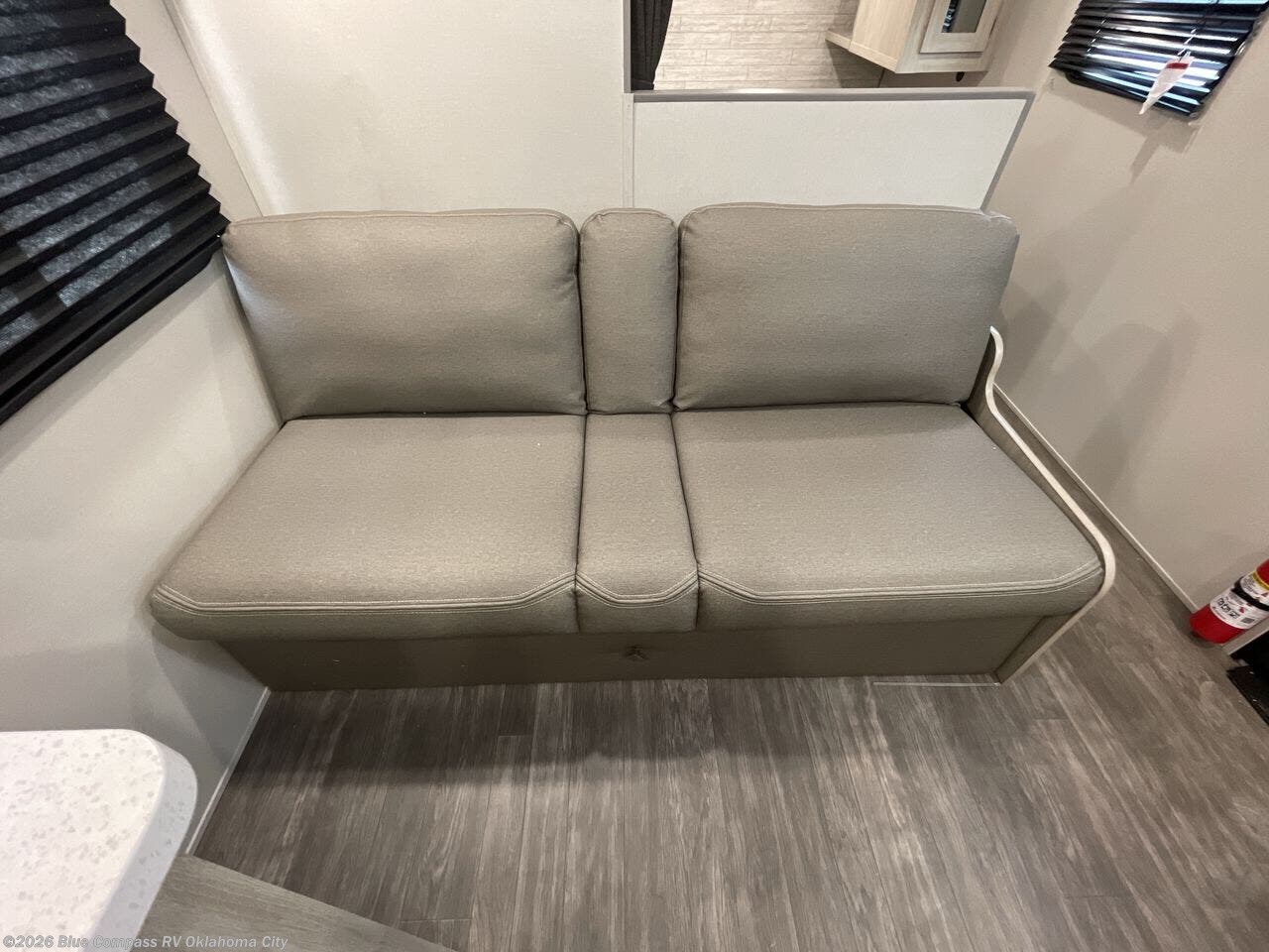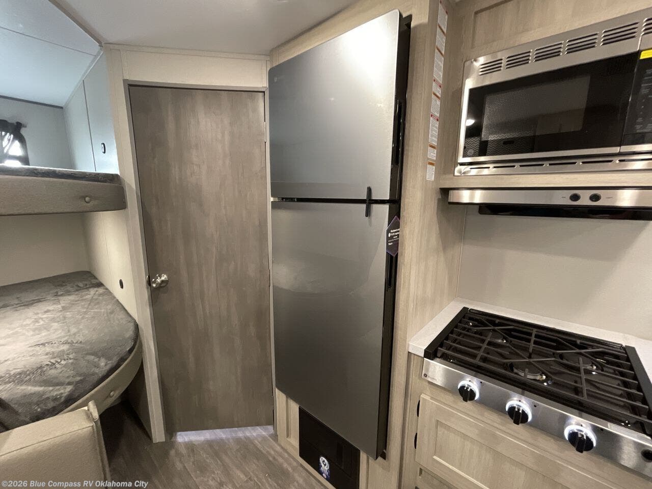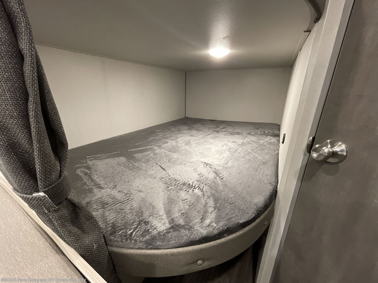 Pack your bags and head out on a fun weekend camping trip with this travel trailer! Whether you have a small family or a few guests wanting to come along, there will be enough sleeping spaces between the double-size bunk beds, the 60" x 74" queen bed in the front semi-private bedroom, and even the booth dinette. The chef can prepare meals indoors using the three burner cooktop or microwave oven, and there is a 12V 10.7 cu. ft. refrigerator for perishables. There is plenty of storage throughout with the overhead cabinets and wardrobes, as well as outside with the front pass-through storage area!