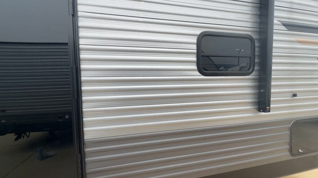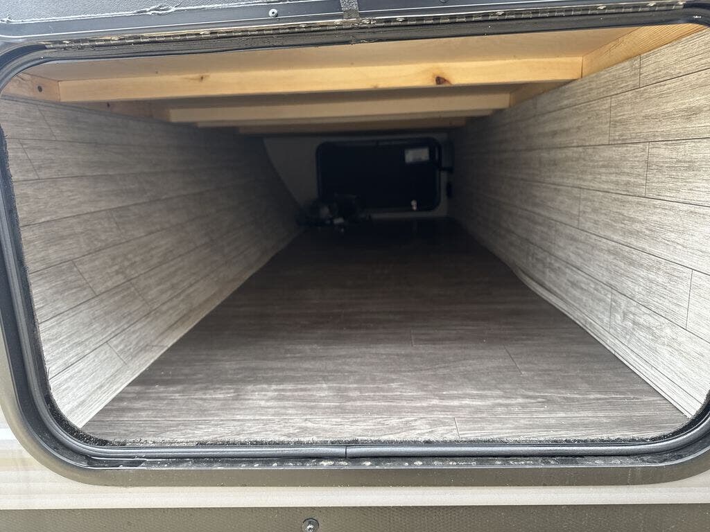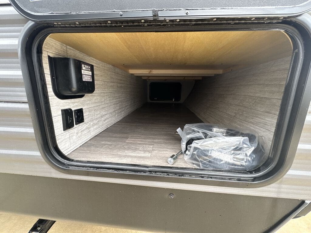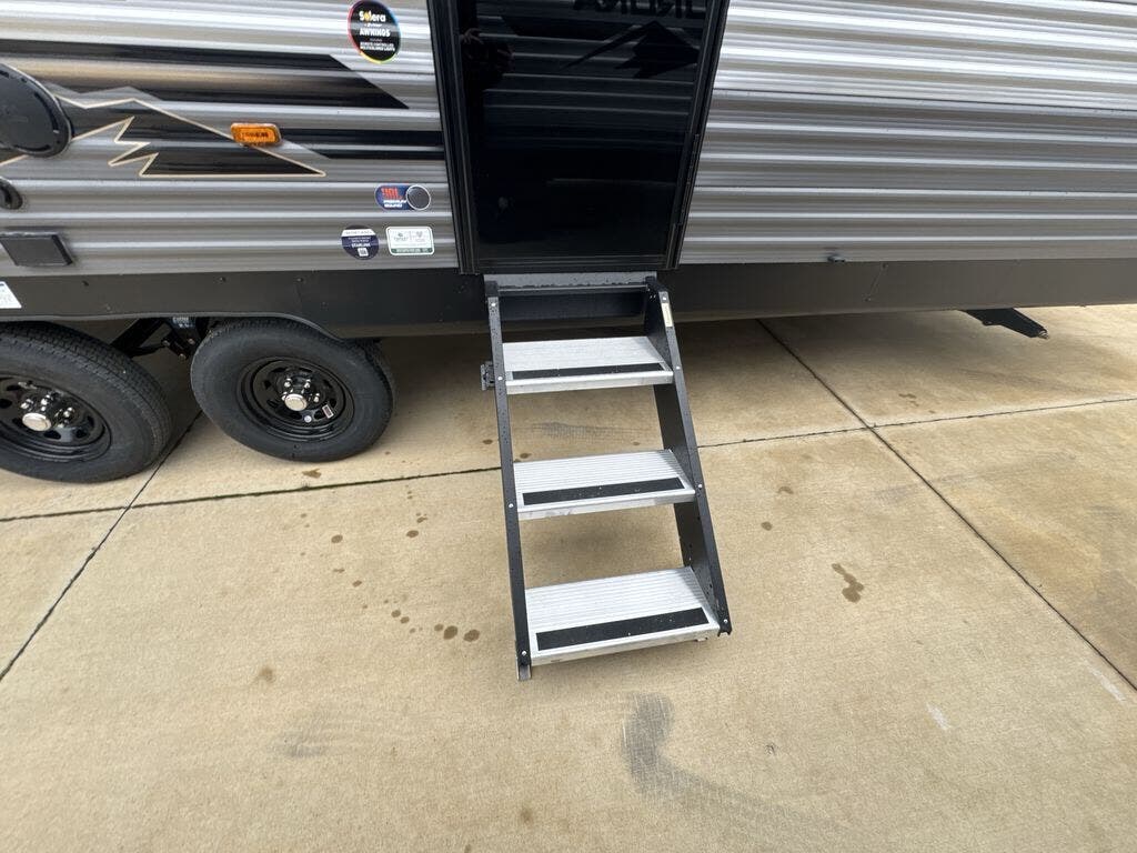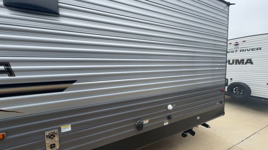 Pack your bags and head out on a fun weekend camping trip with this travel trailer! Whether you have a small family or a few guests wanting to come along, there will be enough sleeping spaces between the double-size bunk beds, the 60" x 74" queen bed in the front semi-private bedroom, and even the booth dinette. The chef can prepare meals indoors using the three burner cooktop or microwave oven, and there is a 12V 10.7 cu. ft. refrigerator for perishables. There is plenty of storage throughout with the overhead cabinets and wardrobes, as well as outside with the front pass-through storage area!