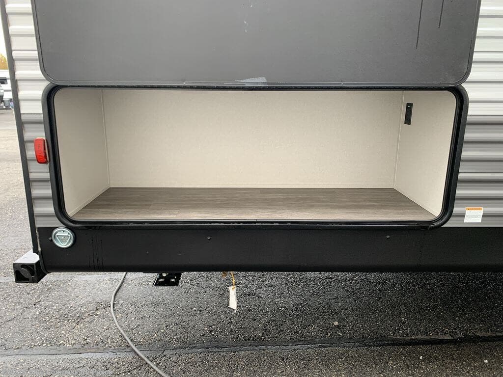Everyone will have a comfortable time camping in this travel trailer! It features a set of double sized bunk beds for the kids or guests to sleep on and are conveniently next to the rear corner bathroom which has a tub/shower with a skylight above for added natural lighting. The booth dinette and sofa slide opens up the kitchen area so you have more space to prepare your best meals with the three burner cooktop. When you're ready to wind down your nights, grab a snack from the large pantry, a beverage from the 10.7 cu. ft. refrigerator, and place your drink in the cupholder/arm rest of the sofa while you watch a movie at the entertainment center!