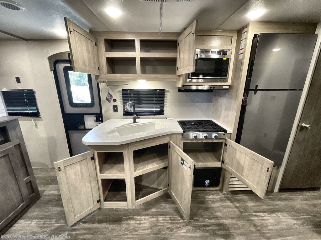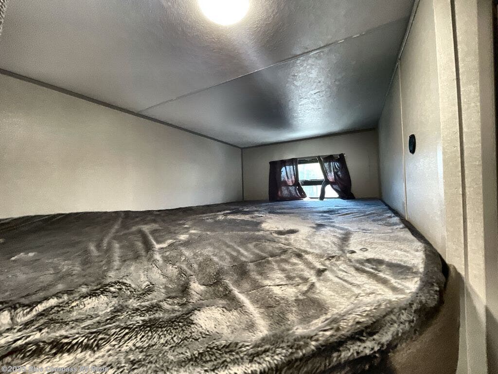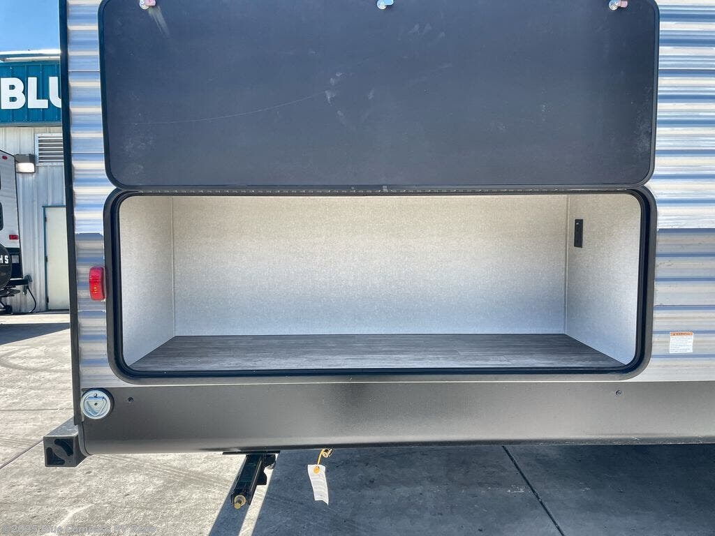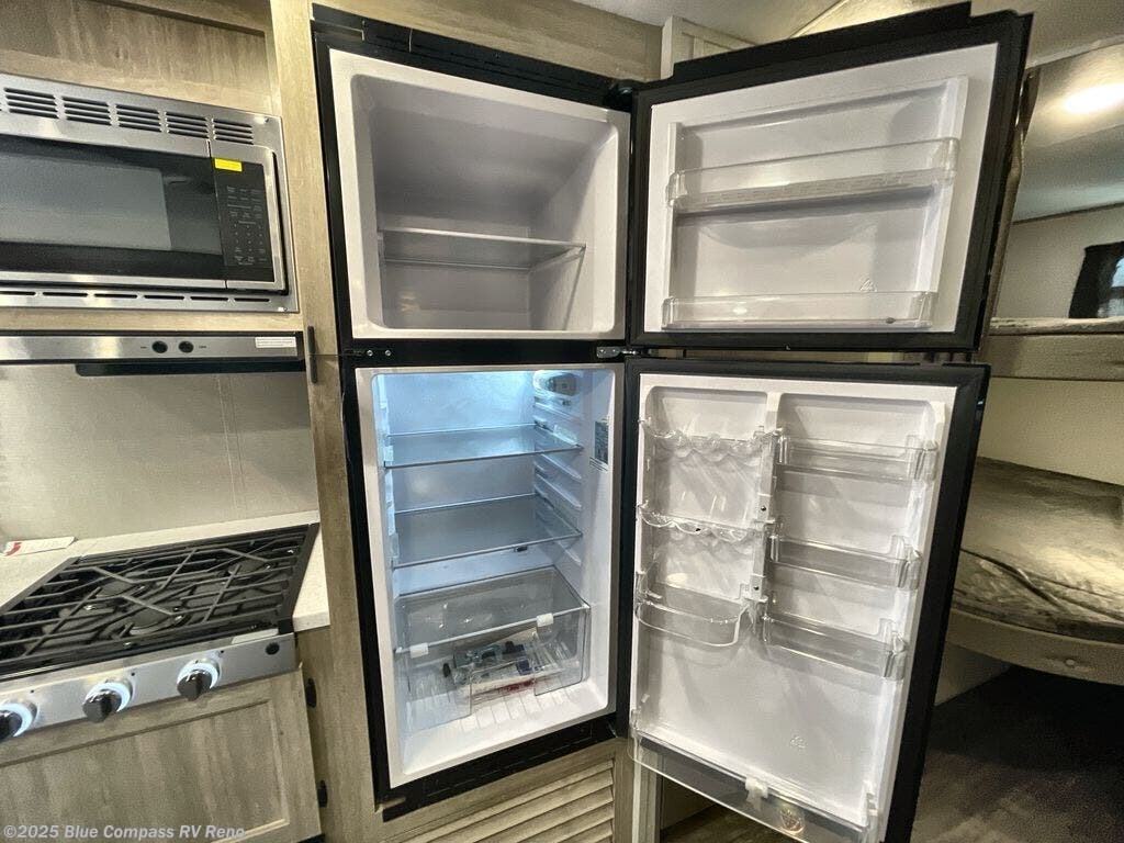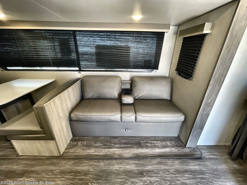 Everyone will have a comfortable time camping in this travel trailer! It features a set of double sized bunk beds for the kids or guests to sleep on and are conveniently next to the rear corner bathroom which has a tub/shower with a skylight above for added natural lighting. The booth dinette and sofa slide opens up the kitchen area so you have more space to prepare your best meals with the three burner cooktop. When you're ready to wind down your nights, grab a snack from the large pantry, a beverage from the 10.7 cu. ft. refrigerator, and place your drink in the cupholder/arm rest of the sofa while you watch a movie at the entertainment center!