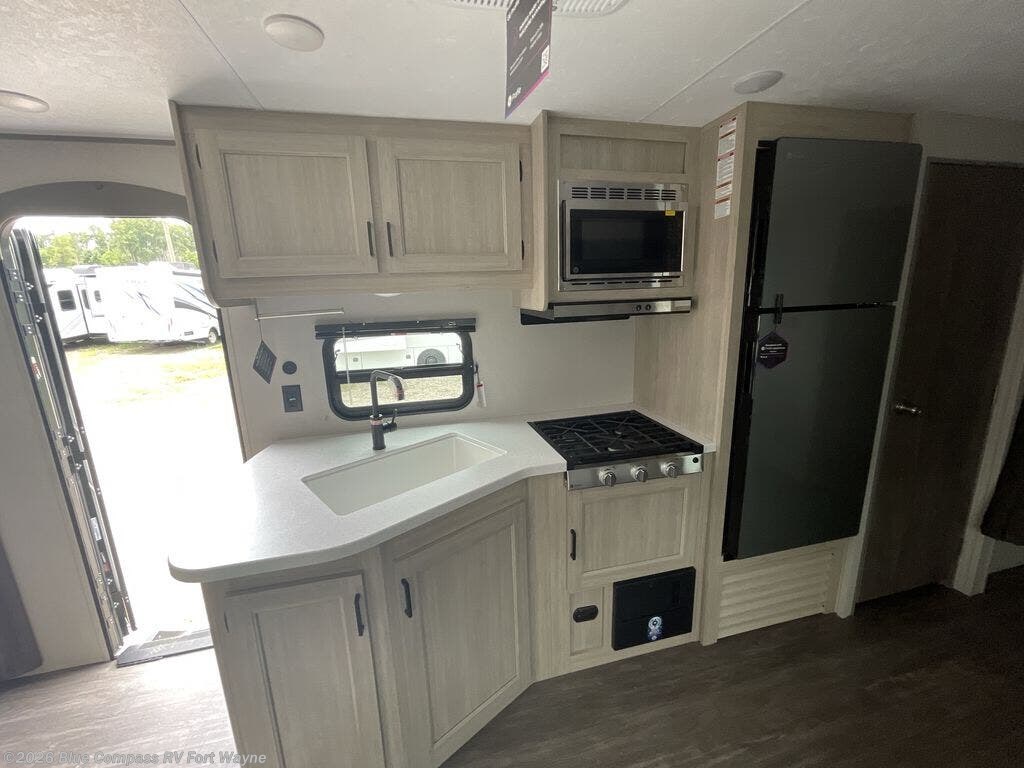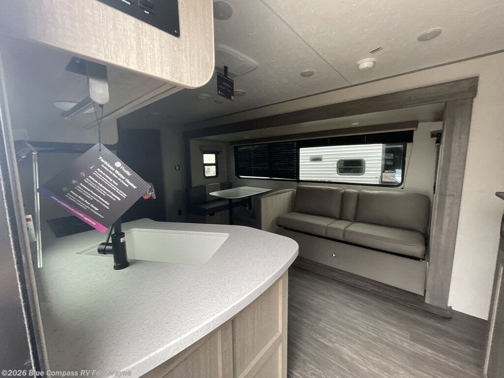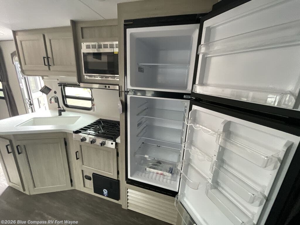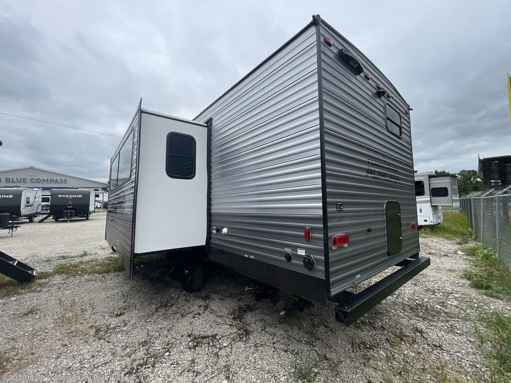 Everyone will have a comfortable time camping in this travel trailer! It features a set of double sized bunk beds for the kids or guests to sleep on and are conveniently next to the rear corner bathroom which has a tub/shower with a skylight above for added natural lighting. The booth dinette and sofa slide opens up the kitchen area so you have more space to prepare your best meals with the three burner cooktop. When you're ready to wind down your nights, grab a snack from the large pantry, a beverage from the 10.7 cu. ft. refrigerator, and place your drink in the cupholder/arm rest of the sofa while you watch a movie at the entertainment center!