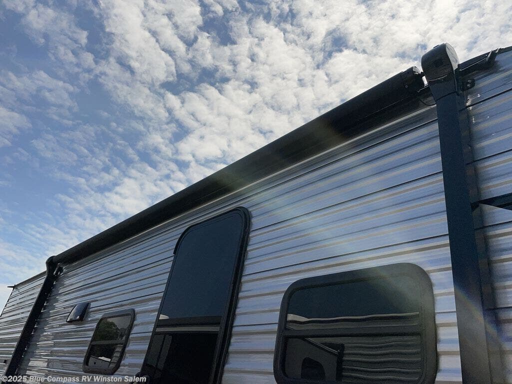Everyone will have a comfortable time camping in this travel trailer! It features a set of double sized bunk beds for the kids or guests to sleep on and are conveniently next to the rear corner bathroom which has a tub/shower with a skylight above for added natural lighting. The booth dinette and sofa slide opens up the kitchen area so you have more space to prepare your best meals with the three burner cooktop. When you're ready to wind down your nights, grab a snack from the large pantry, a beverage from the 10.7 cu. ft. refrigerator, and place your drink in the cupholder/arm rest of the sofa while you watch a movie at the entertainment center!