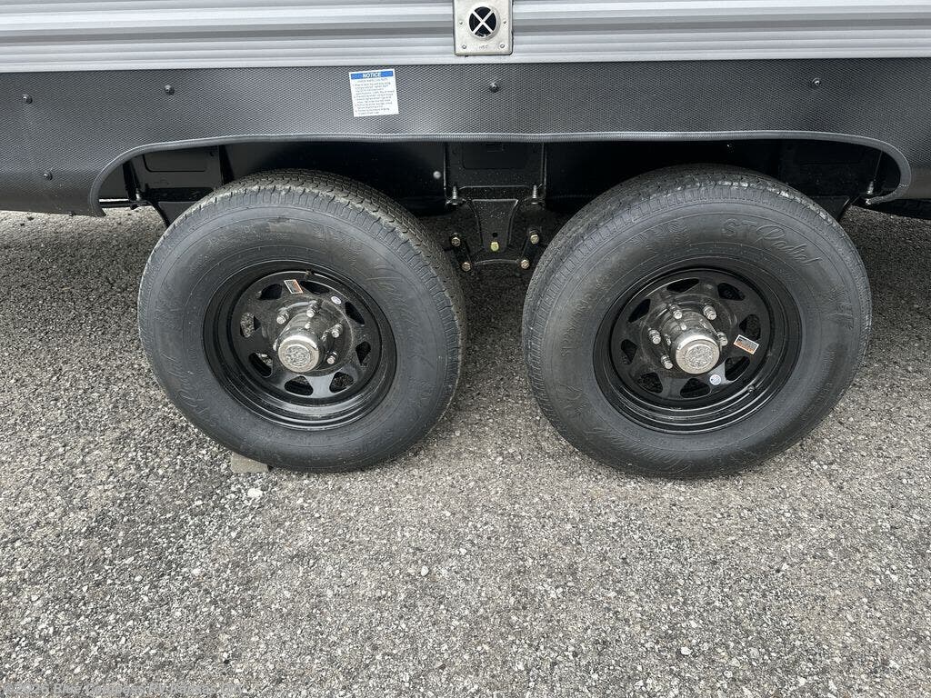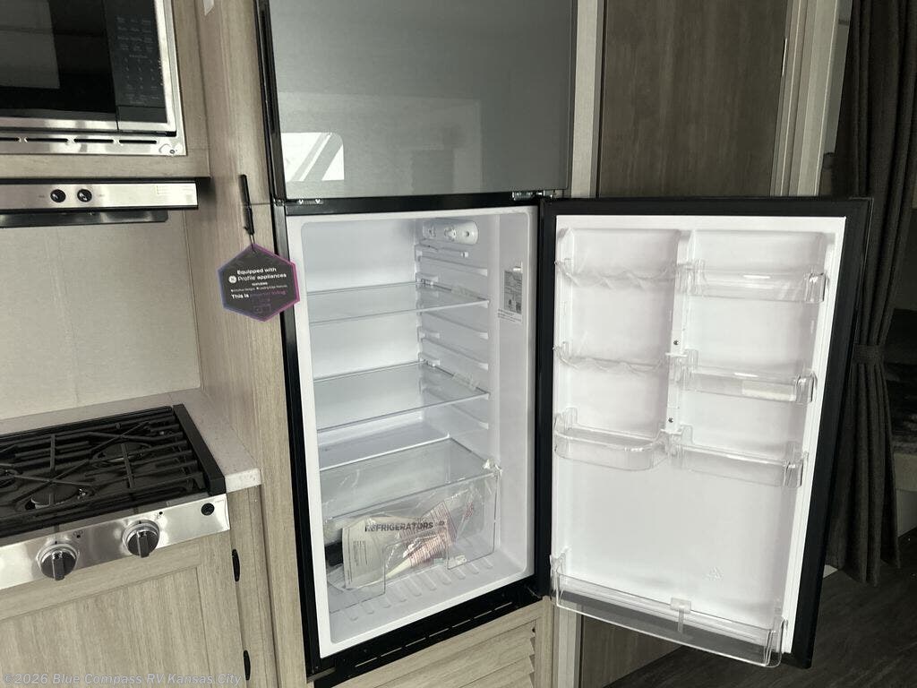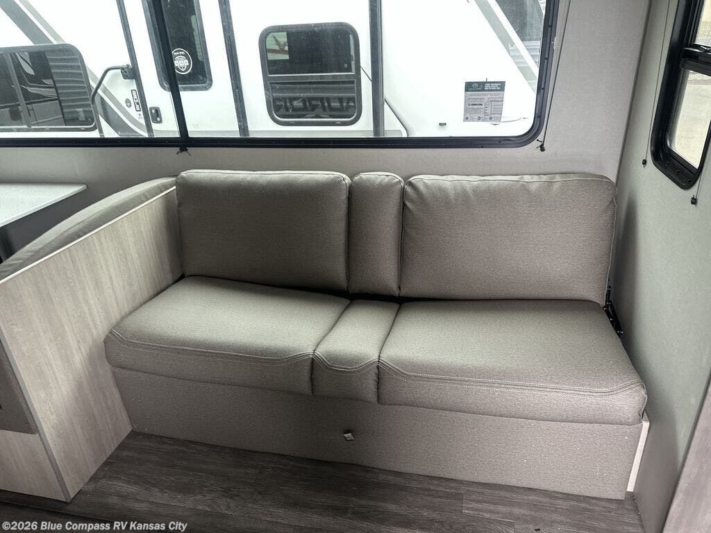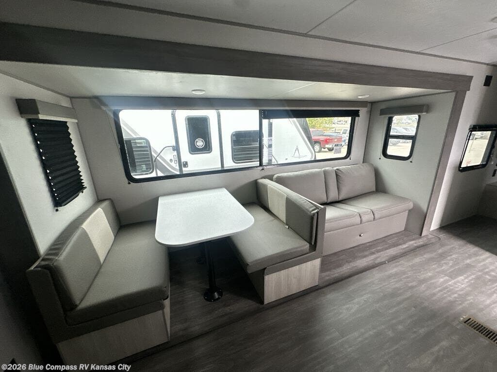 Everyone will have a comfortable time camping in this travel trailer! It features a set of double sized bunk beds for the kids or guests to sleep on and are conveniently next to the rear corner bathroom which has a tub/shower with a skylight above for added natural lighting. The booth dinette and sofa slide opens up the kitchen area so you have more space to prepare your best meals with the three burner cooktop. When you're ready to wind down your nights, grab a snack from the large pantry, a beverage from the 10.7 cu. ft. refrigerator, and place your drink in the cupholder/arm rest of the sofa while you watch a movie at the entertainment center!