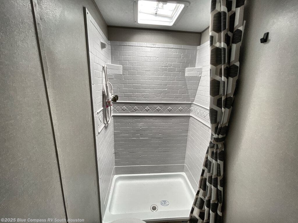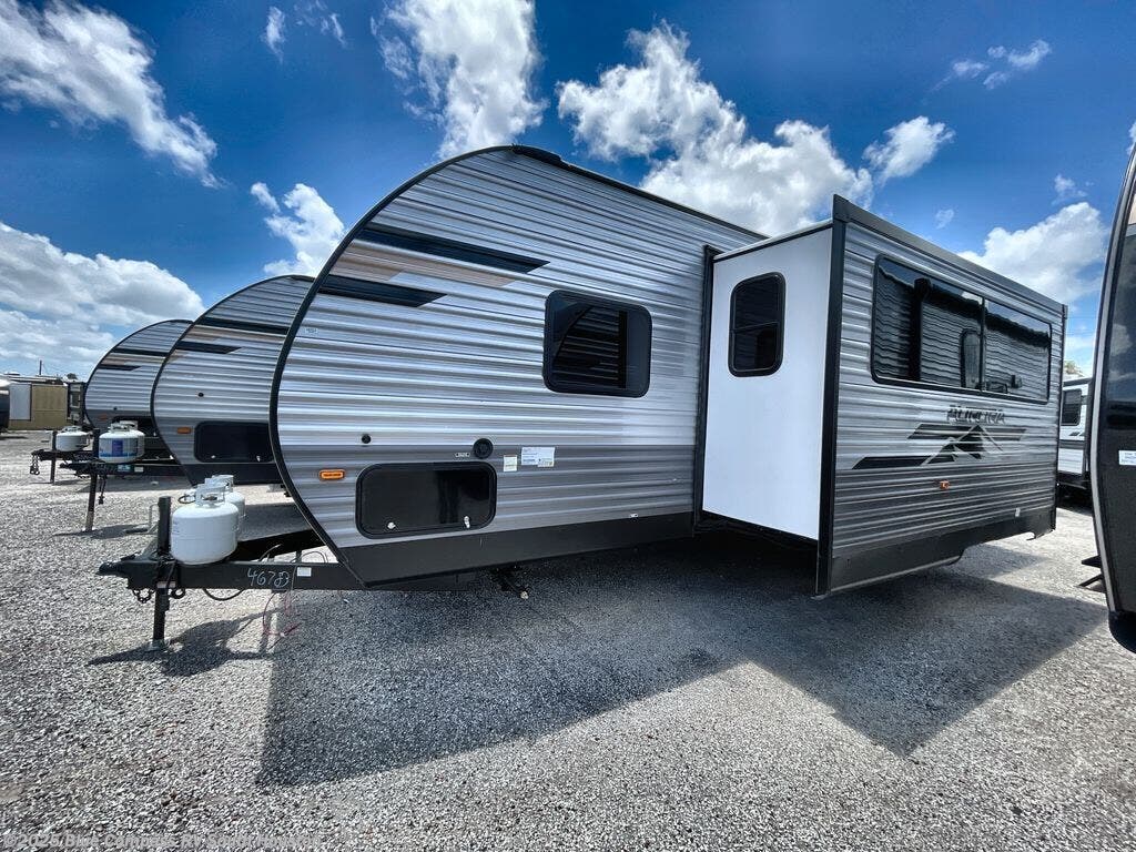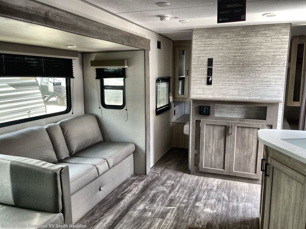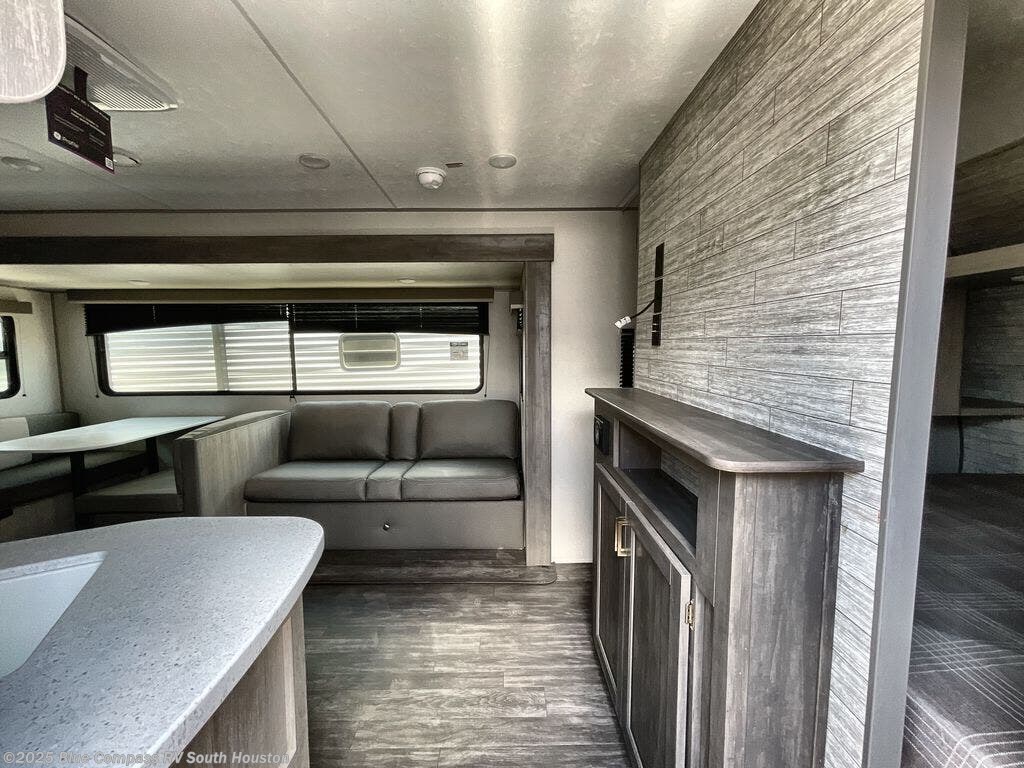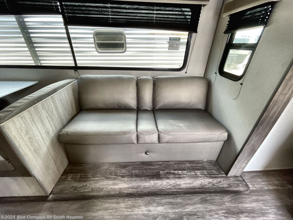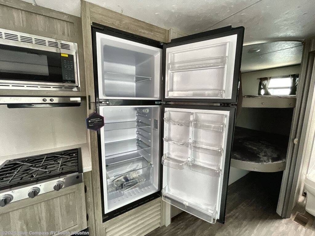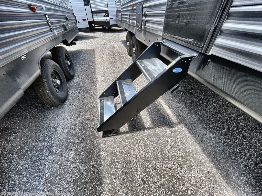 Everyone will have a comfortable time camping in this travel trailer! It features a set of double sized bunk beds for the kids or guests to sleep on and are conveniently next to the rear corner bathroom which has a tub/shower with a skylight above for added natural lighting. The booth dinette and sofa slide opens up the kitchen area so you have more space to prepare your best meals with the three burner cooktop. When you're ready to wind down your nights, grab a snack from the large pantry, a beverage from the 10.7 cu. ft. refrigerator, and place your drink in the cupholder/arm rest of the sofa while you watch a movie at the entertainment center!