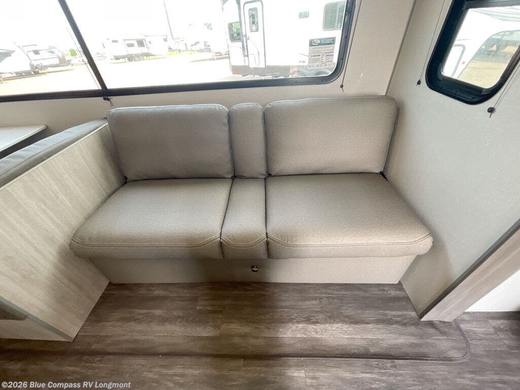 Everyone will have a comfortable time camping in this travel trailer! It features a set of double sized bunk beds for the kids or guests to sleep on and are conveniently next to the rear corner bathroom which has a tub/shower with a skylight above for added natural lighting. The booth dinette and sofa slide opens up the kitchen area so you have more space to prepare your best meals with the three burner cooktop. When you're ready to wind down your nights, grab a snack from the large pantry, a beverage from the 10.7 cu. ft. refrigerator, and place your drink in the cupholder/arm rest of the sofa while you watch a movie at the entertainment center!