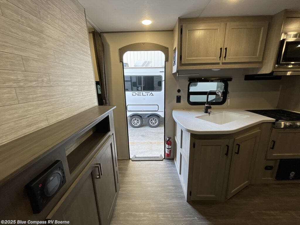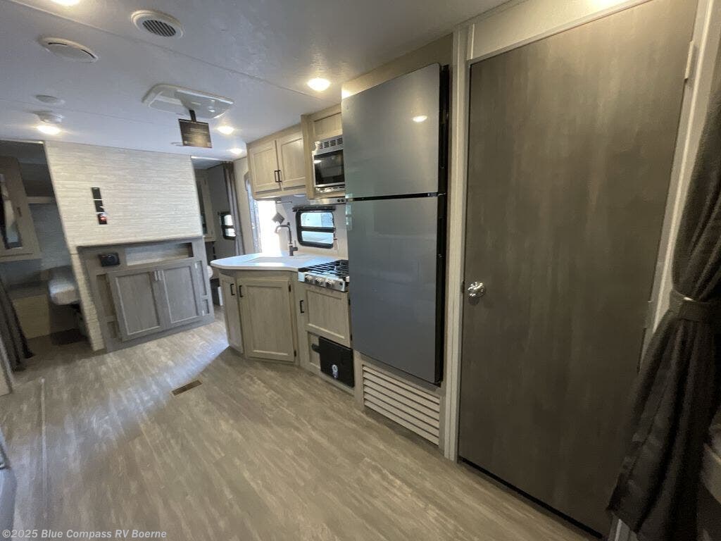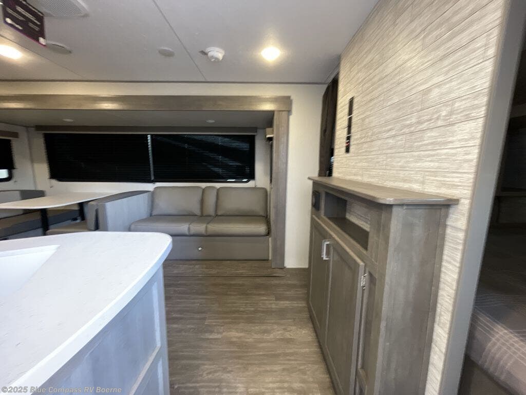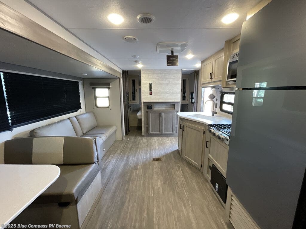 Everyone will have a comfortable time camping in this travel trailer! It features a set of double sized bunk beds for the kids or guests to sleep on and are conveniently next to the rear corner bathroom which has a tub/shower with a skylight above for added natural lighting. The booth dinette and sofa slide opens up the kitchen area so you have more space to prepare your best meals with the three burner cooktop. When you're ready to wind down your nights, grab a snack from the large pantry, a beverage from the 10.7 cu. ft. refrigerator, and place your drink in the cupholder/arm rest of the sofa while you watch a movie at the entertainment center!