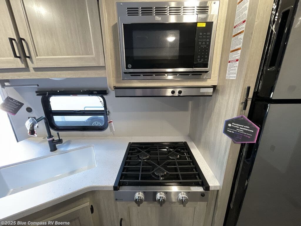 Comfortability, usability, and quality is what you will find in each one of these Forest River Aurora Light travel trailers! They are designed with a superior build and packed full with industry leading, functional, and distinctive standard features. The diamond plate rock guard will protect your unit from road debris and the nitrogen filled radial tires, which keep their pressure longer, offer better fuel economy. You will also find upgraded JBL Elite exterior speaker outside, an electric awning with multicolor lights and remote, plus flush mount baggage doors for easy packing. The interiors are beautifully designed with matte black kitchen and bath faucets, black nightshades in the living room, and GE kitchen appliances!