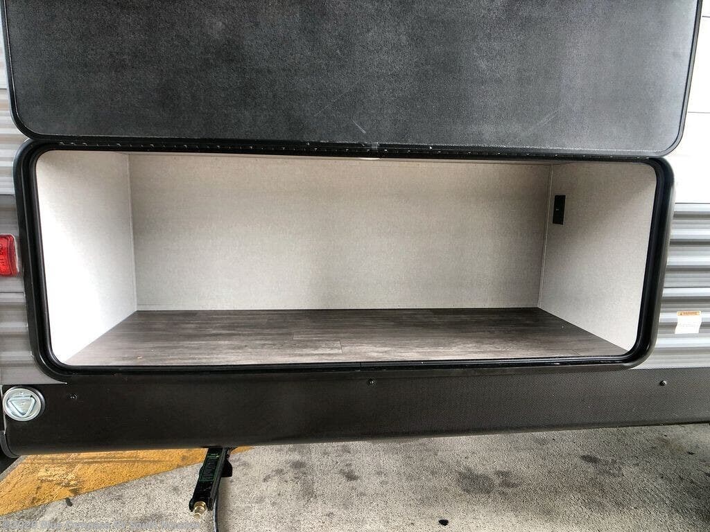 Everyone will have a comfortable time camping in this travel trailer! It features a set of double sized bunk beds for the kids or guests to sleep on and are conveniently next to the rear corner bathroom which has a tub/shower with a skylight above for added natural lighting. The booth dinette and sofa slide opens up the kitchen area so you have more space to prepare your best meals with the three burner cooktop. When you're ready to wind down your nights, grab a snack from the large pantry, a beverage from the 10.7 cu. ft. refrigerator, and place your drink in the cupholder/arm rest of the sofa while you watch a movie at the entertainment center!