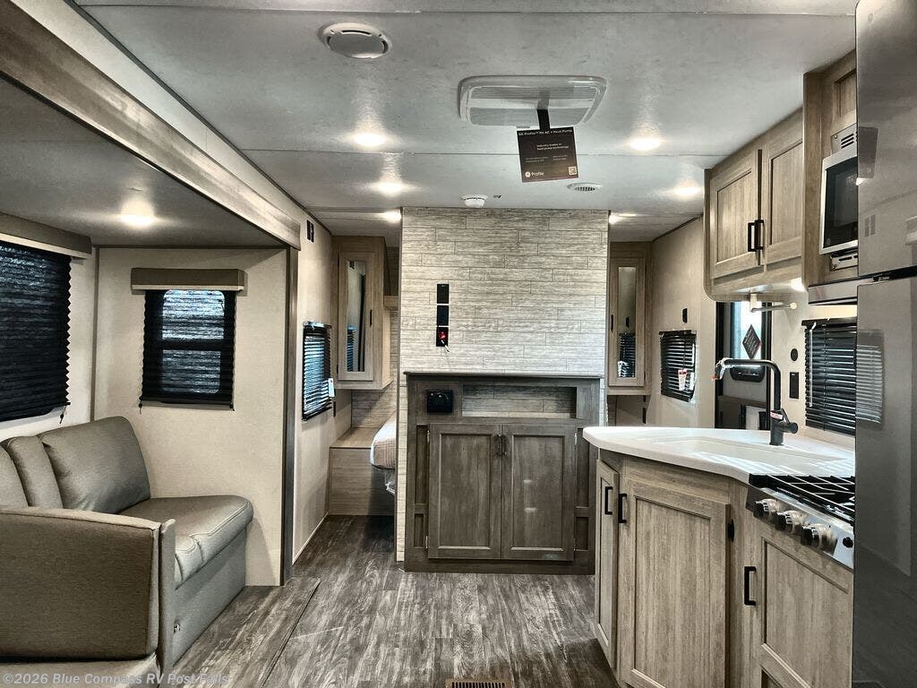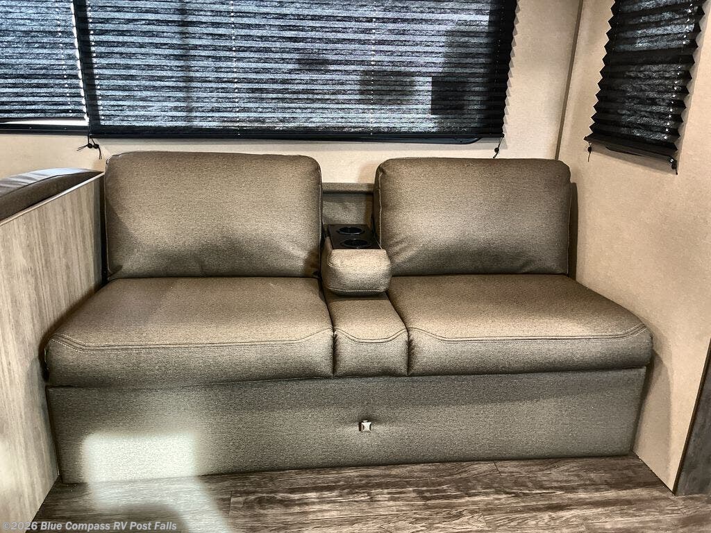 Everyone will have a comfortable time camping in this travel trailer! It features a set of double sized bunk beds for the kids or guests to sleep on and are conveniently next to the rear corner bathroom which has a tub/shower with a skylight above for added natural lighting. The booth dinette and sofa slide opens up the kitchen area so you have more space to prepare your best meals with the three burner cooktop. When you're ready to wind down your nights, grab a snack from the large pantry, a beverage from the 10.7 cu. ft. refrigerator, and place your drink in the cupholder/arm rest of the sofa while you watch a movie at the entertainment center!