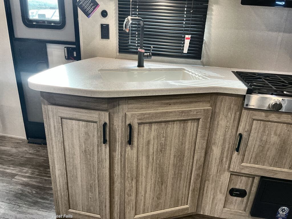 Comfortability, usability, and quality is what you will find in each one of these Forest River Aurora Light travel trailers! They are designed with a superior build and packed full with industry leading, functional, and distinctive standard features. The diamond plate rock guard will protect your unit from road debris and the nitrogen filled radial tires, which keep their pressure longer, offer better fuel economy. You will also find upgraded JBL Elite exterior speaker outside, an electric awning with multicolor lights and remote, plus flush mount baggage doors for easy packing. The interiors are beautifully designed with matte black kitchen and bath faucets, black nightshades in the living room, and GE kitchen appliances!