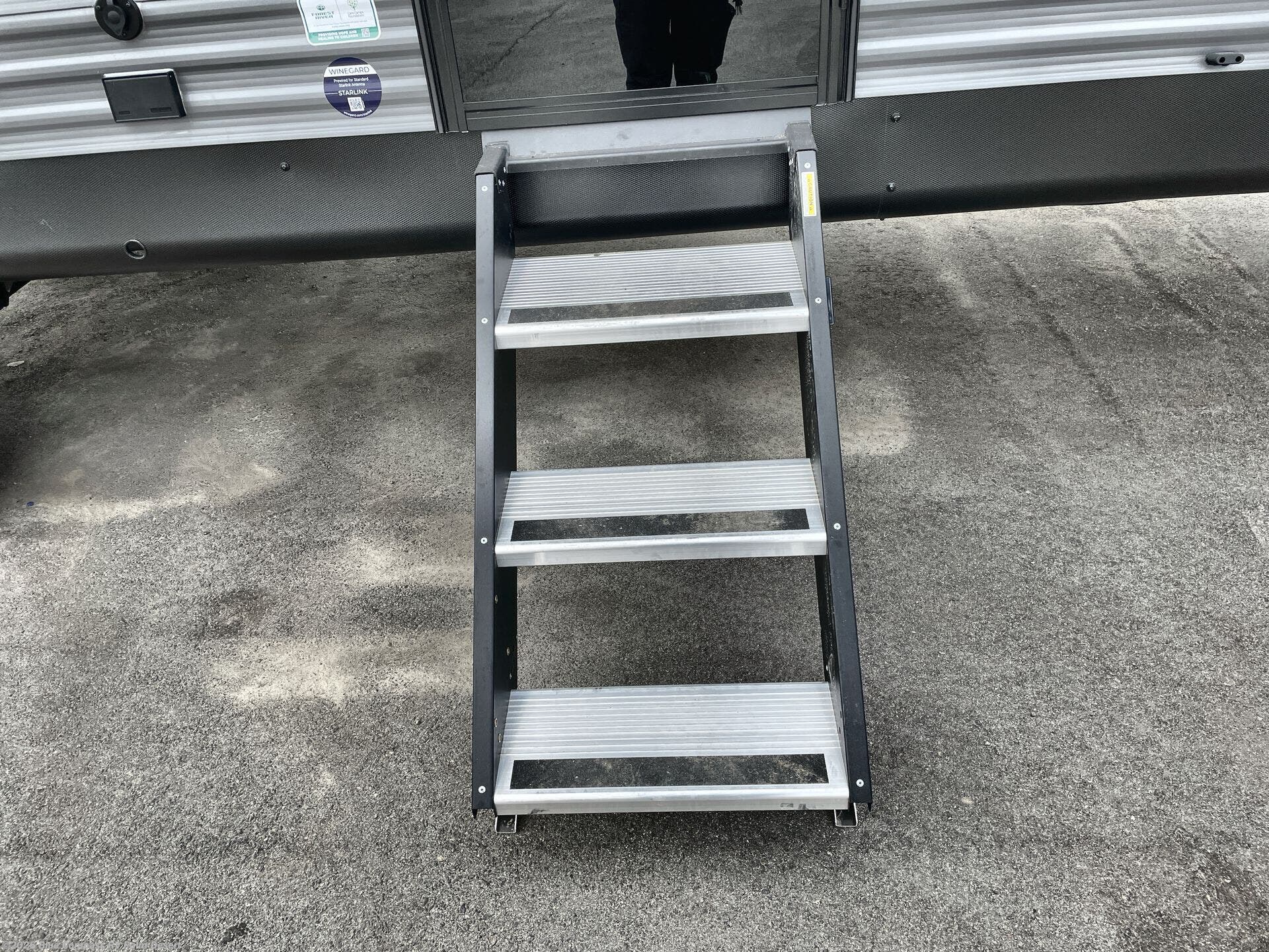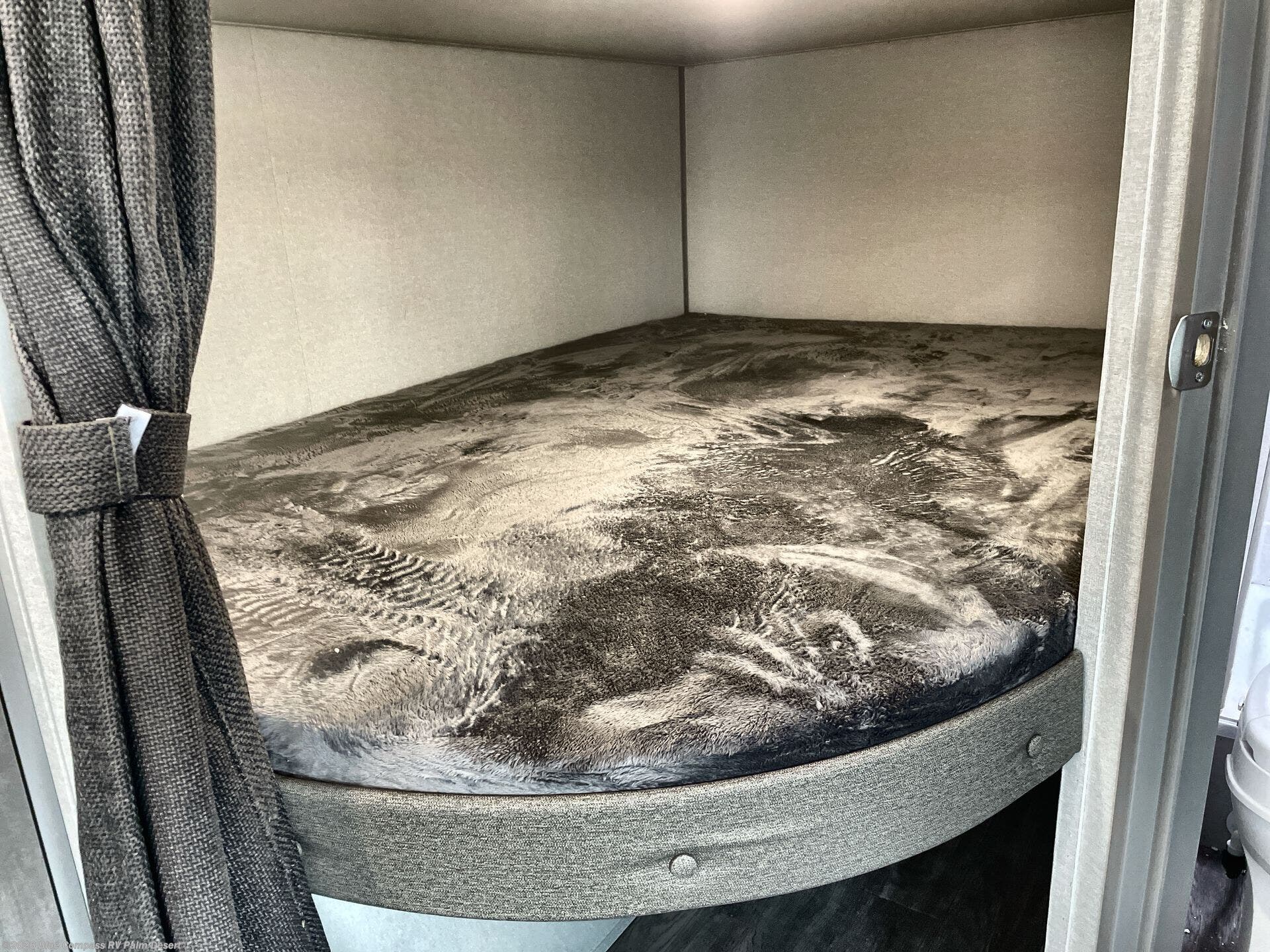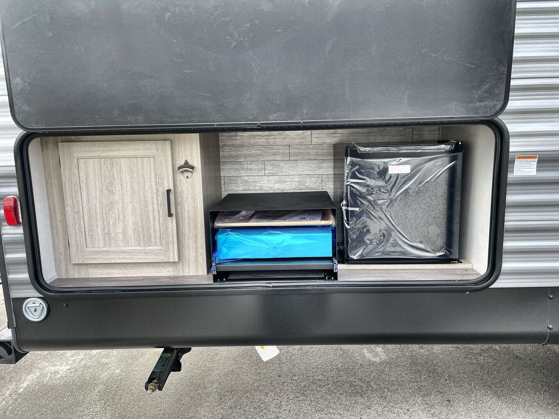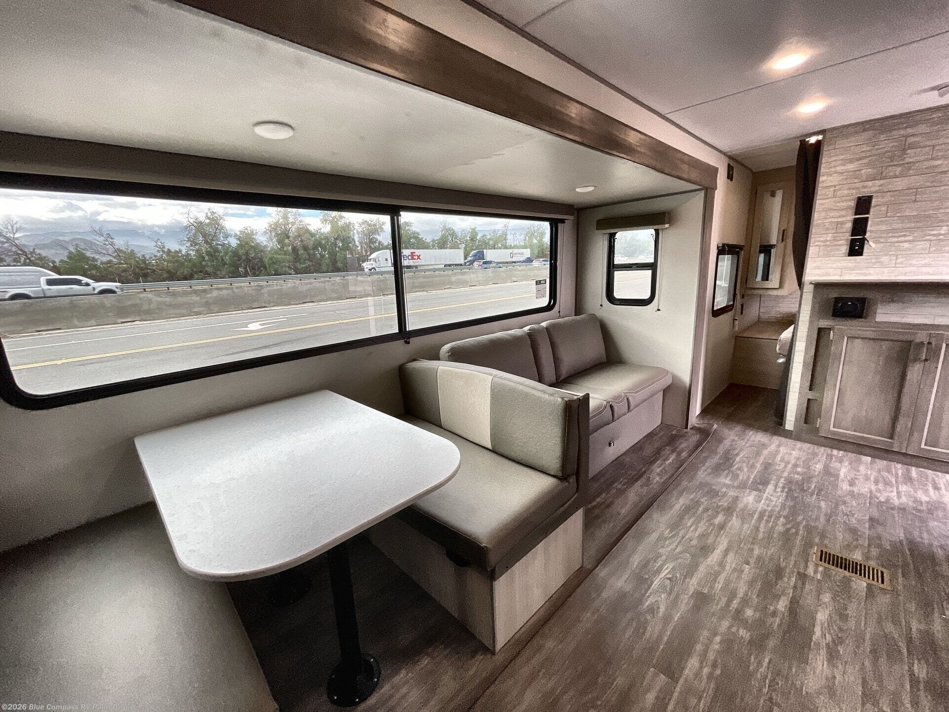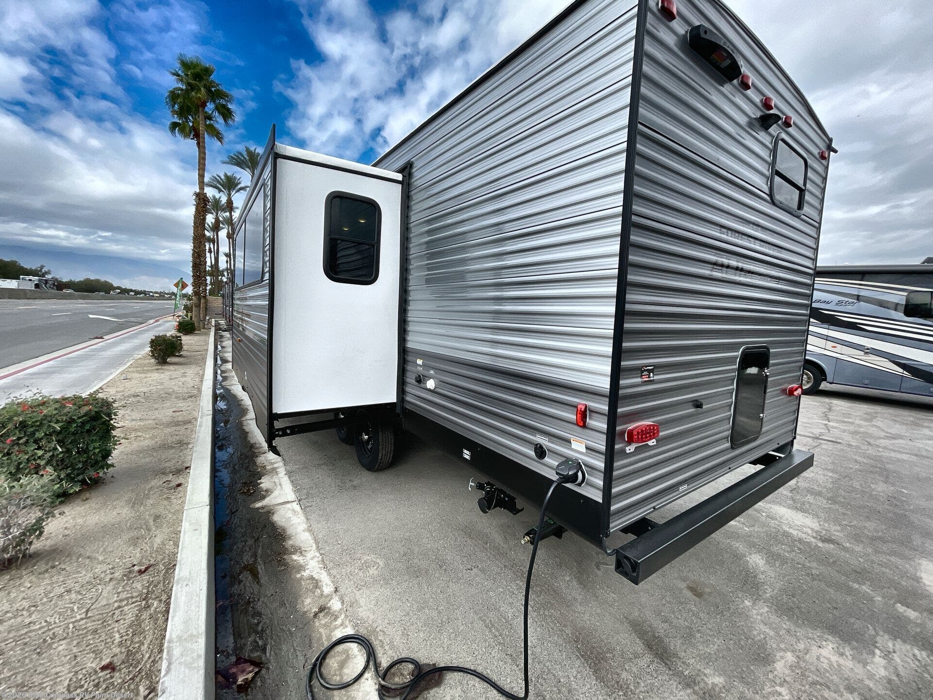 Everyone will have a comfortable time camping in this travel trailer! It features a set of double sized bunk beds for the kids or guests to sleep on and are conveniently next to the rear corner bathroom which has a tub/shower with a skylight above for added natural lighting. The booth dinette and sofa slide opens up the kitchen area so you have more space to prepare your best meals with the three burner cooktop. When you're ready to wind down your nights, grab a snack from the large pantry, a beverage from the 10.7 cu. ft. refrigerator, and place your drink in the cupholder/arm rest of the sofa while you watch a movie at the entertainment center!