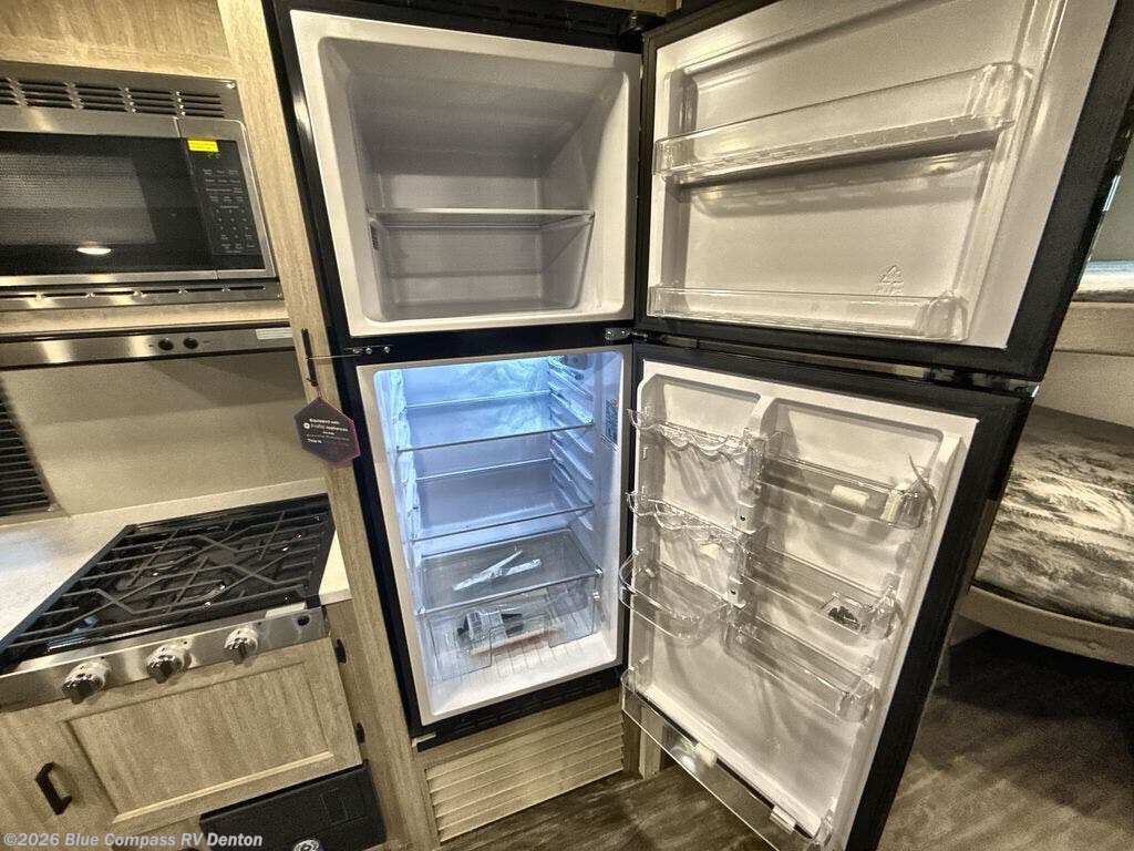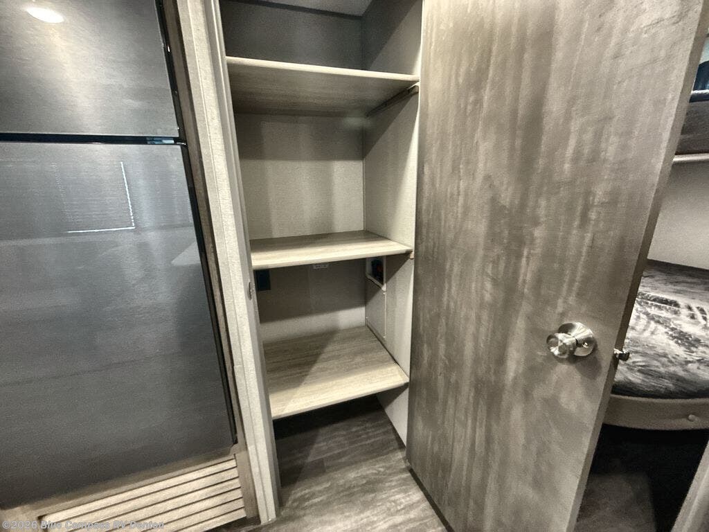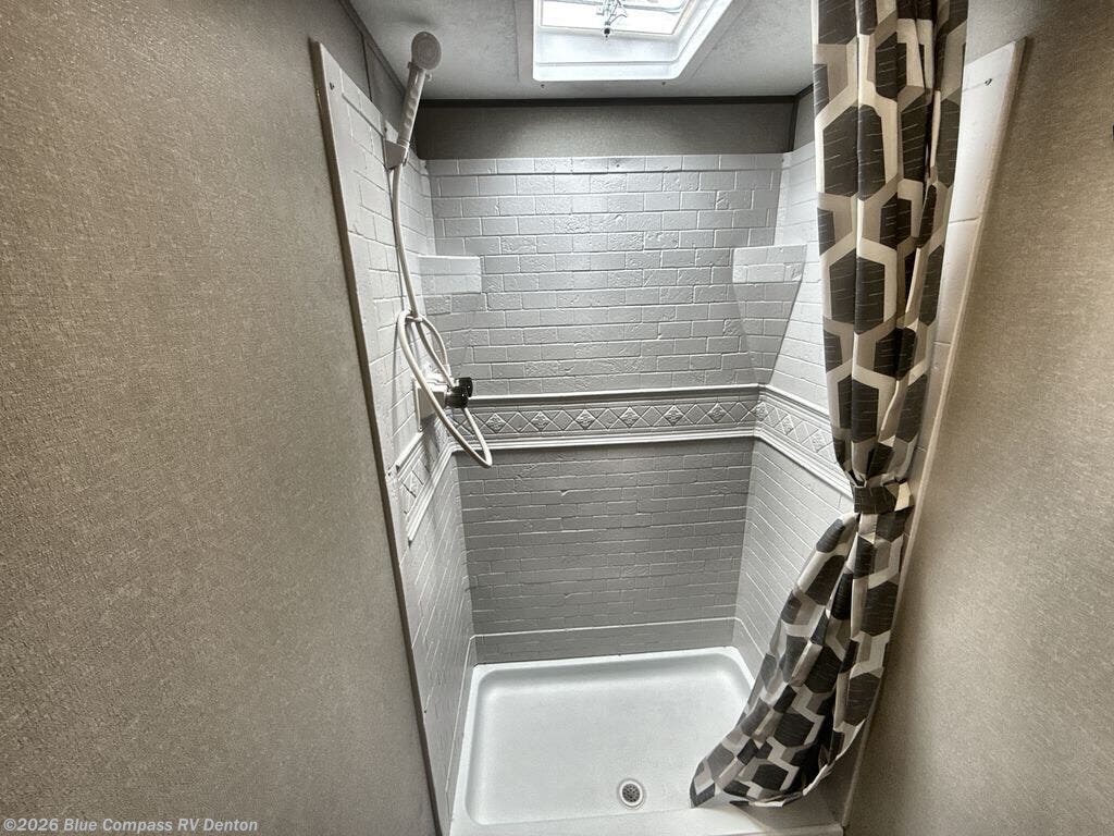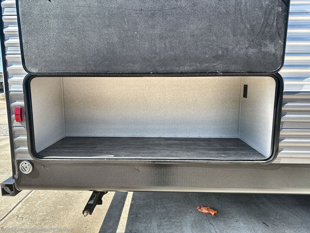 Everyone will have a comfortable time camping in this travel trailer! It features a set of double sized bunk beds for the kids or guests to sleep on and are conveniently next to the rear corner bathroom which has a tub/shower with a skylight above for added natural lighting. The booth dinette and sofa slide opens up the kitchen area so you have more space to prepare your best meals with the three burner cooktop. When you're ready to wind down your nights, grab a snack from the large pantry, a beverage from the 10.7 cu. ft. refrigerator, and place your drink in the cupholder/arm rest of the sofa while you watch a movie at the entertainment center!