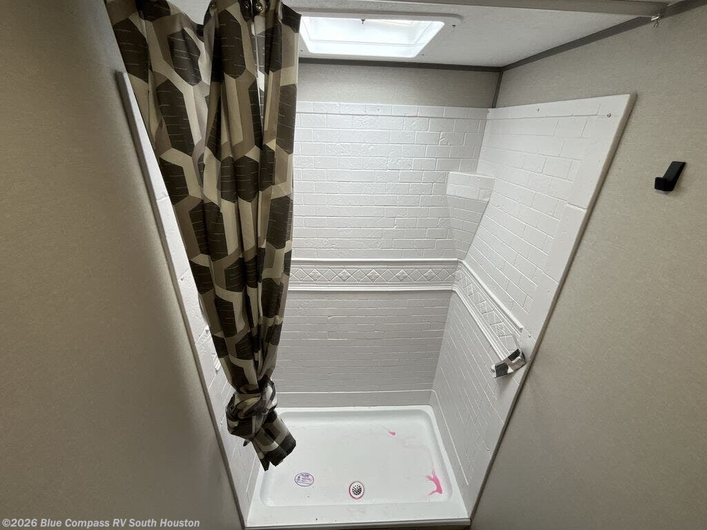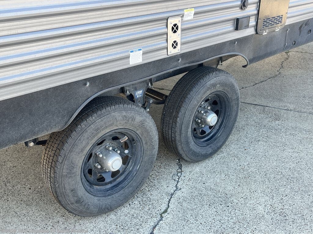 Everyone will have a comfortable time camping in this travel trailer! It features a set of double sized bunk beds for the kids or guests to sleep on and are conveniently next to the rear corner bathroom which has a tub/shower with a skylight above for added natural lighting. The booth dinette and sofa slide opens up the kitchen area so you have more space to prepare your best meals with the three burner cooktop. When you're ready to wind down your nights, grab a snack from the large pantry, a beverage from the 10.7 cu. ft. refrigerator, and place your drink in the cupholder/arm rest of the sofa while you watch a movie at the entertainment center!