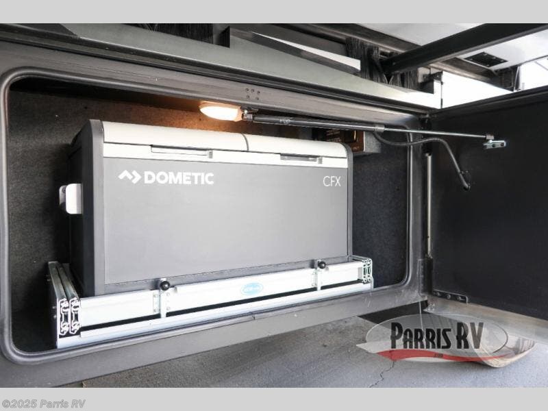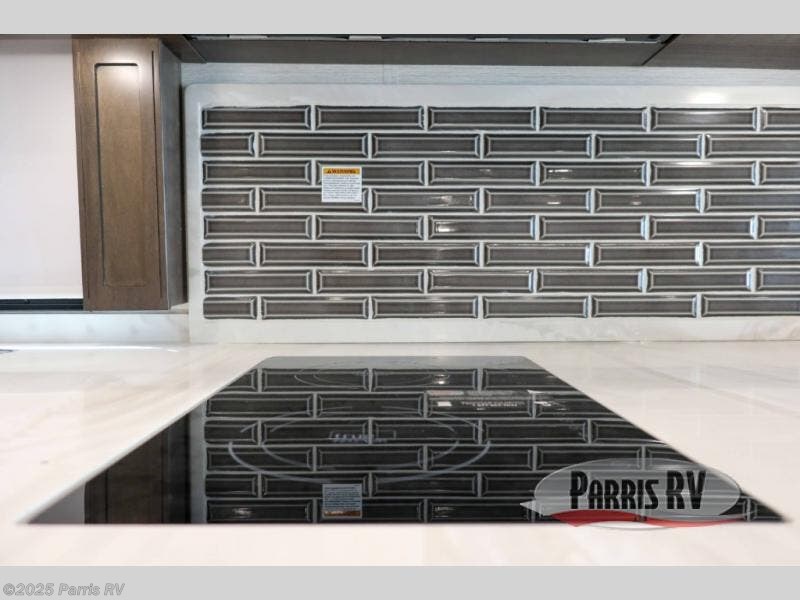 Luxury abounds throughout this motorhome! Starting with the rear corner bathroom with a dual sink vanity for two to get ready at once, a shower to freshen up in, and a stackable washer and dryer just outside the door. There is a wardrobe slide with a set of 30" x 73" bunk beds and two bunk TVs so the little ones can watch movies in bed. The private bedroom has a tilt-a-view king bed slide to lay your head on at night with a wardrobe and 43" LED TV for your entertainment. You can prepare your best home cooked meals with the two burner electric induction cooktop and the countertop extension adds more prepping space, plus the half bathroom is just off the kitchen for quick bathroom breaks. Relax each night in the living area on either the sofa/bed, the booth dinette, or the Villa Ultrafab hide-a-bed sofa. There is even an exterior radio with a 43" TV to watch the big game outdoors!