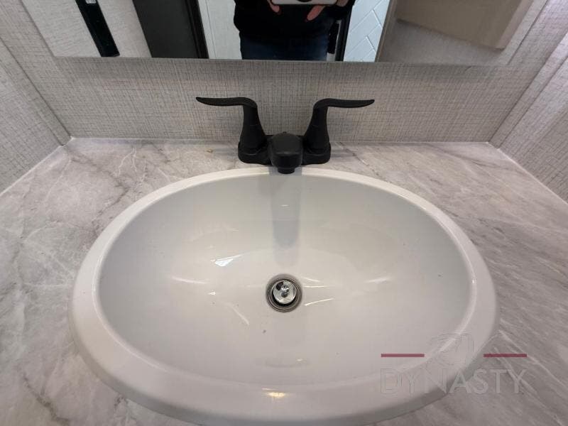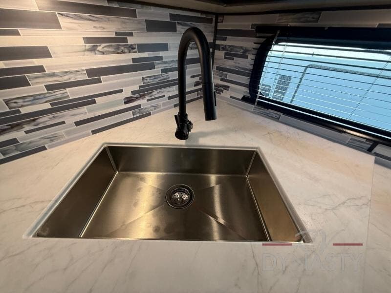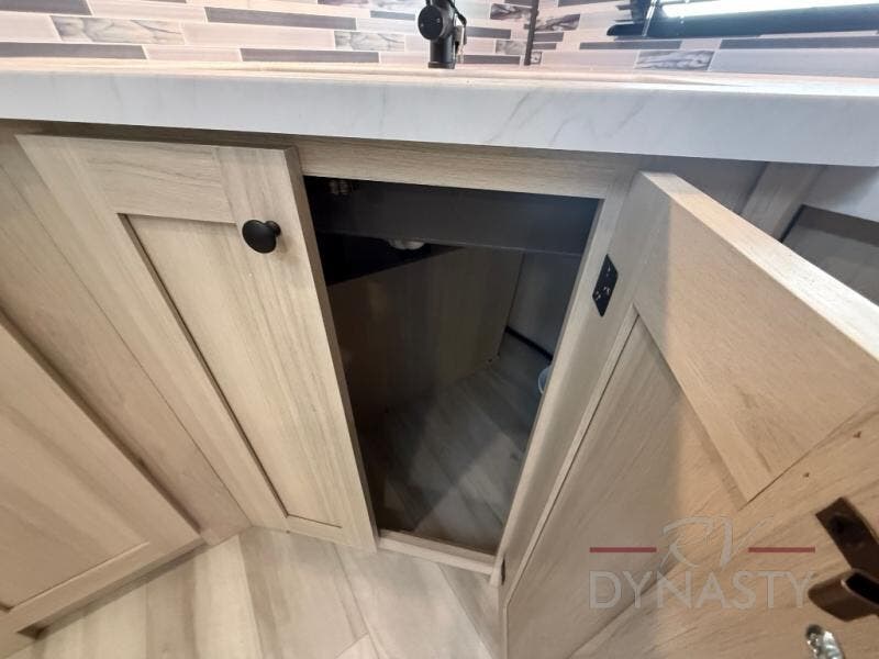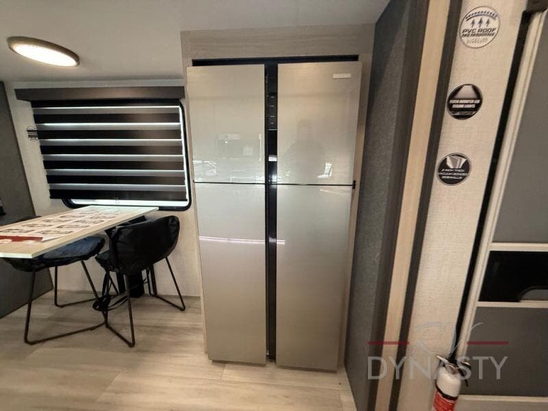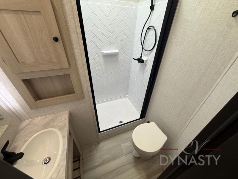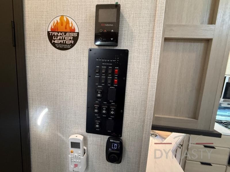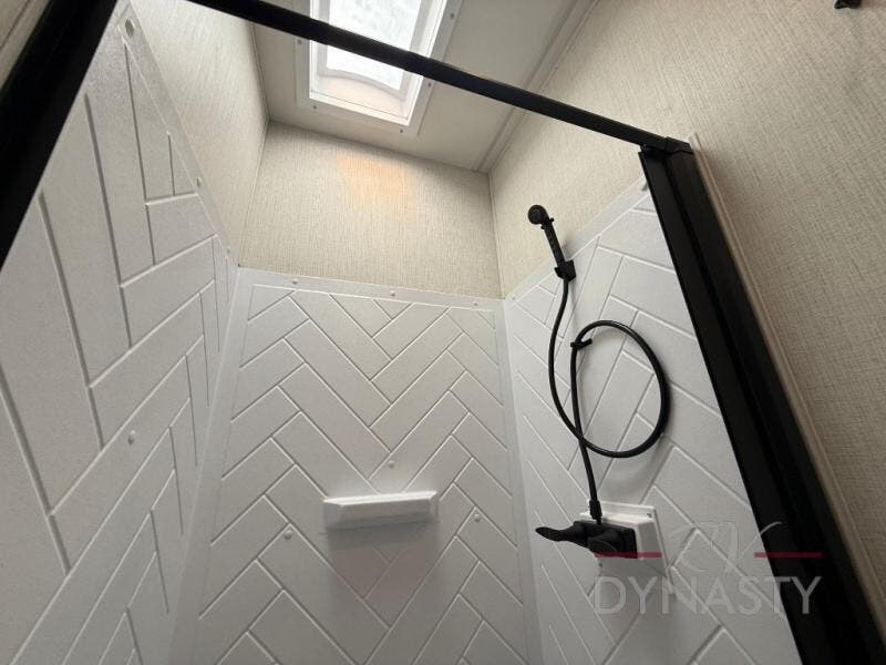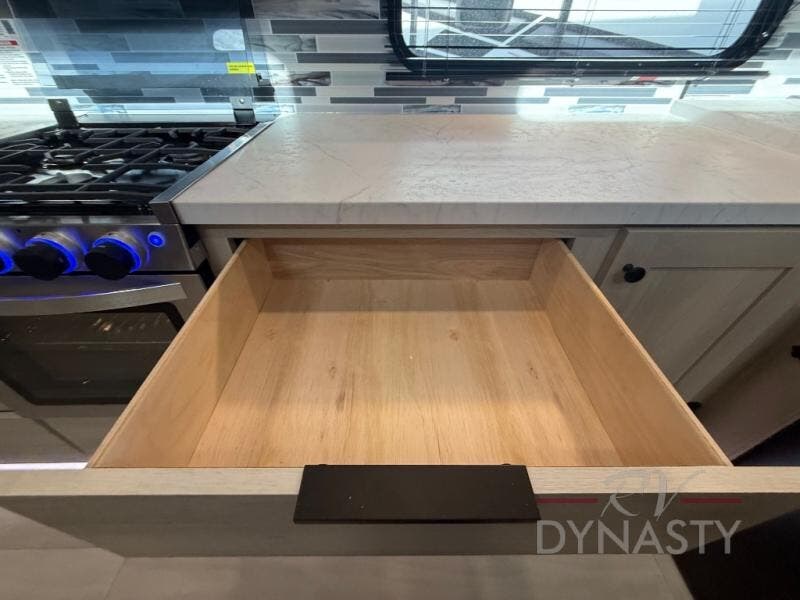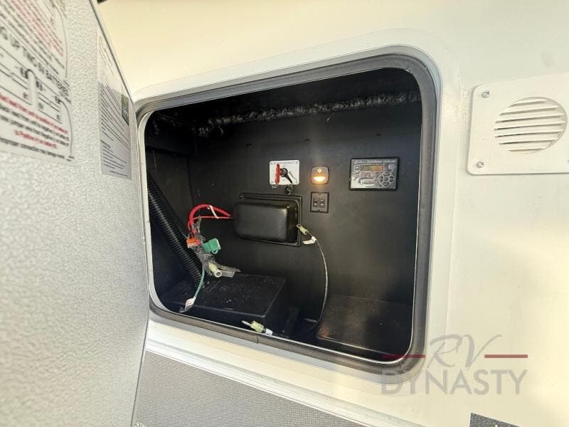 This fifth wheel is packed with features to make each trip enjoyable! The middle kitchen might be your favorite room with wrap-around counter space, a pantry, and a 16 cu. ft. 12V refrigerator for food storage. You can dine at the hi-top table and chairs here, or sit in the front living area on the dual sofas and theater seating! This area can become your guests bedroom at night since there are dual opposing slides and wardrobe storage for their things. You will also find a full-length wardrobe in the rear private bedroom, along with a king bed slide out, plus washer and dryer prep! And of course there is a full bath so everyone can stay clean each day!