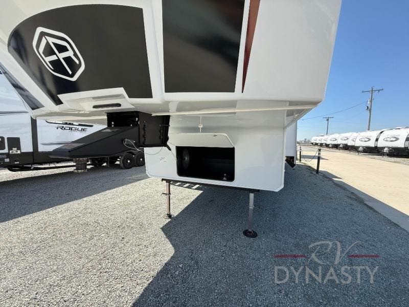 With any Cardinal fifth wheel by Forest River you will enjoy affordable luxury at every turn. These models are constructed with residential fiberglass insulation in the roof and floor, a sectioned ABS plastic underbelly armor, and a vacuum bonded, welded aluminum structure for added strength and durability. You will also find seamless roto-cast holding tanks, an outdoor shower, and 4-point auto leveling for quick and easy setup. There are carpet-free living spaces, residential backsplash, motion lighting throughout, and many more comforts!