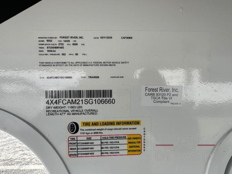 2026 Forest River Cardinal 36MB Specifications