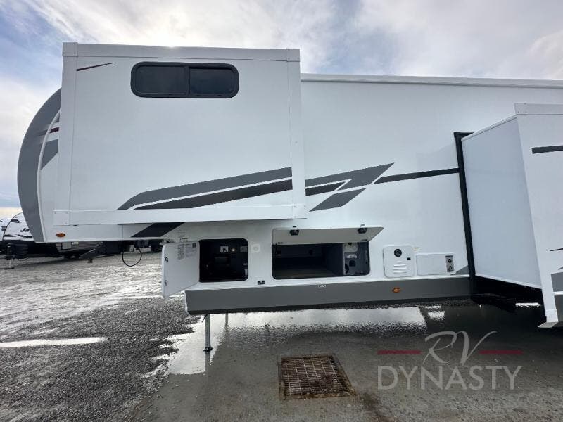 With any Cardinal fifth wheel by Forest River you will enjoy affordable luxury at every turn. These models are constructed with residential fiberglass insulation in the roof and floor, a sectioned ABS plastic underbelly armor, and a vacuum bonded, welded aluminum structure for added strength and durability. You will also find seamless roto-cast holding tanks, an outdoor shower, and 4-point auto leveling for quick and easy setup. Each model includes a best-in-class, high-efficiency 35,000 BTU furnace, along with a 13,500 BTU ducted A/C, with second and third A/C prep, plus an on-demand tankless water heater for added convenience. There are carpet-free living spaces, residential backsplash, motion lighting throughout, and many more comforts!