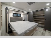 This fifth wheel's name describes it perfectly; it's the best! Your guests will love the rear private bunkhouse with dual opposing slides, bunk beds, plus a hide-a-bed sofa and an entertainment center with dual wardrobes. There is even a half bath with its own exterior entry door! You will have the front private bedroom all to yourselves with a king bed slide out and a walk-in wardrobe with washer and dryer prep. And the full bath is close by for easy nighttime use. The combined middle kitchen and living room will be a space everyone can meet in since there is a hi-top table and chairs and theater seating, an entertainment center with a fireplace, plus a kitchen island where snacks can be set out.