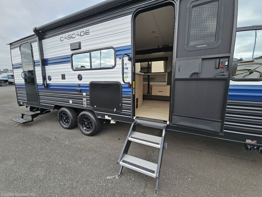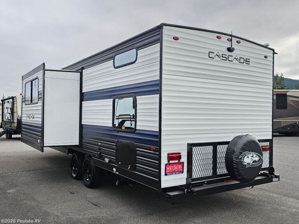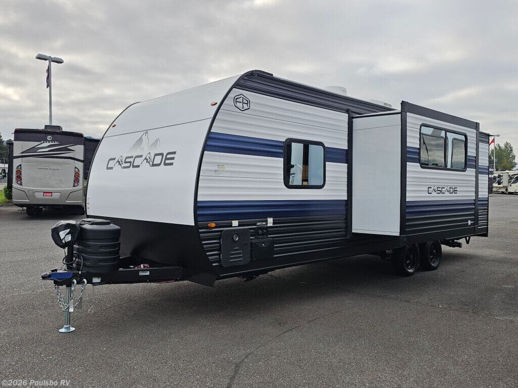 Discover the 2026 Forest River Cascade 23DBH, a versatile new travel trailer designed to elevate your RVing experience. This model is not just a means of transportation but a comfortable home away from home, perfect for family adventures or weekend getaways. With a length of 29.53 feet and a dry weight of 5861 pounds, it is suitable for towing while providing ample space for relaxation. The sleeping capacity of up to 8 people makes it an ideal choice for larger groups or families. The Cascade 23DBH features a convenient bunkhouse layout, which is perfect for accommodating children or guests, ensuring everyone has a cozy place to rest after a day of exploration. The front and rear manual leveling jacks enhance stability, allowing for quick and easy setup at your campsite. Additionally, this trailer comes equipped with a slide-out that expands the living area, creating an inviting space for gatherings. The integrated audio system adds to the ambiance, making entertaining easy, while the one awning offers a shaded escape from the sun. This RV emphasizes the joys of outdoor living, combining comfort with flexibility, which is essential for making unforgettable memories on the road. As a family-owned, award-winning local RV dealer with multiple locations in Sumner, Everett, Kent, and Mt. Vernon Washington, Poulsbo RV here to help you find the perfect RV. Stock#: FCM637, VIN: 4X4TCSY24T9140293.