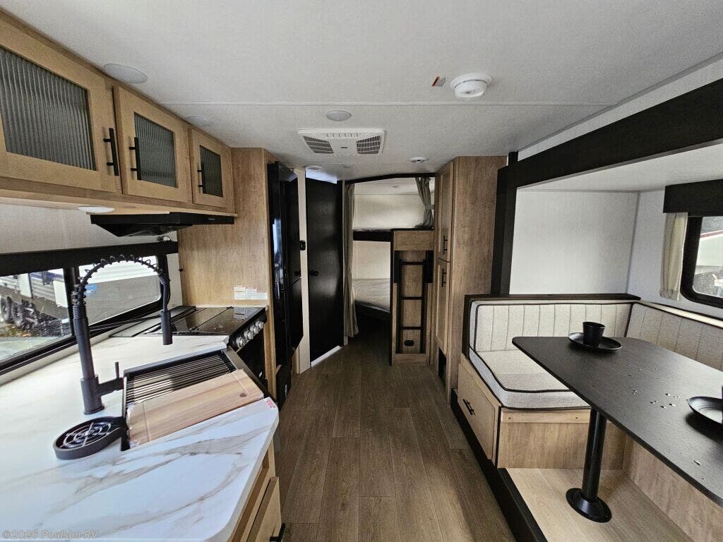 2026 Forest River Cascade 23DBH is a new travel trailer that measures 29.53 feet long, designed to provide a comfortable and versatile living experience for families and groups of up to eight people. This model features a practical bunkhouse that creates additional sleeping space, allowing everyone onboard to rest comfortably while preserving a spacious living area. The interior is thoughtfully designed to offer a cozy atmosphere where you can unwind after a day spent exploring outdoors or enjoying your favorite campground activities. The trailer includes one awning, which extends to provide ample shade and protection from the elements, making your outdoor living space more enjoyable. Leveling jacks are included to make setup simple and ensure your trailer stays stable on uneven ground, enhancing safety and comfort. Weighing 5861 pounds dry, with a hitch weight of 712 pounds, this trailer is streamlined for easier towing, fitting well with various tow vehicles. Perfect for those who enjoy camping with family or friends, this model balances convenience and functionality, offering flexible sleeping arrangements and key features that simplify RV living. The Forest River Cascade 23DBH supports an active lifestyle while providing the comforts needed for extended trips or weekend getaways. As a family-owned, award-winning local RV dealer with multiple locations in Sumner, Everett, Kent, and Mt. Vernon Washington, Poulsbo RV is here to help you find the perfect RV. Stock#: FCS172, VIN: 4X4TCSY25T9140867