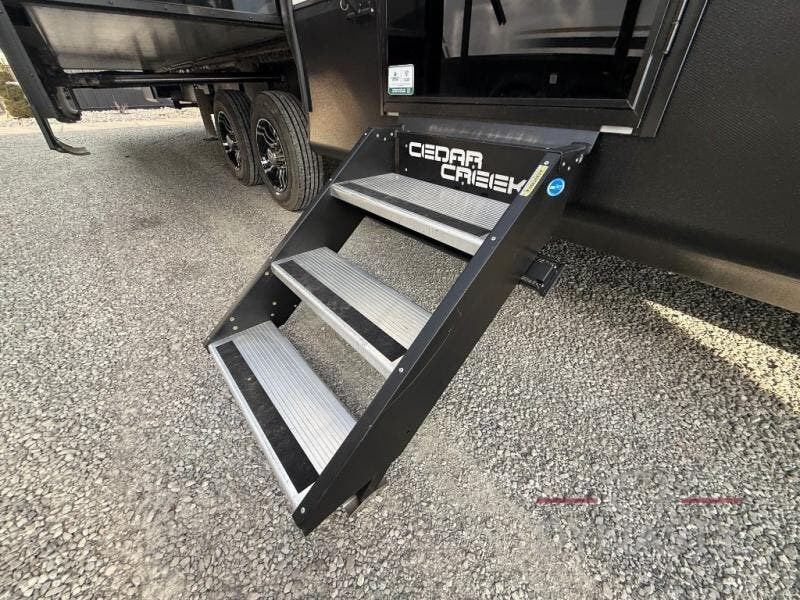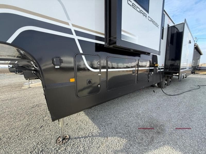 With any Cedar Creek fifth wheel by Forest River, you will find a quality-built RV with your comfort in mind! The all-aluminum super structure on 16" centers or less will provide a solid foundation to your fifth wheel, and the 3M bonded sidewalls will hold up and provide resistance to UV, heat, cold moisture, and even highway chemicals. Each model also includes a Road Warrior suspension for smooth towing, a 6-Point Hydraulic, GEN 3 Leveling System, and a new 101" wide body frame. Inside, you'll enjoy walnut/two tone wooden cabinetry with hidden hinges, cutting board drawer with cut-out trash funnel, motion lighting in the bath and bedroom closet, plus many more comforts. The New Travelfiâ„¢ Pay-as-you go internet provides the ability to bring your own internet rather than relying solely on campground WiFi, and the "Rich Solar" 200W solar panel will give you off-grid capabilities!