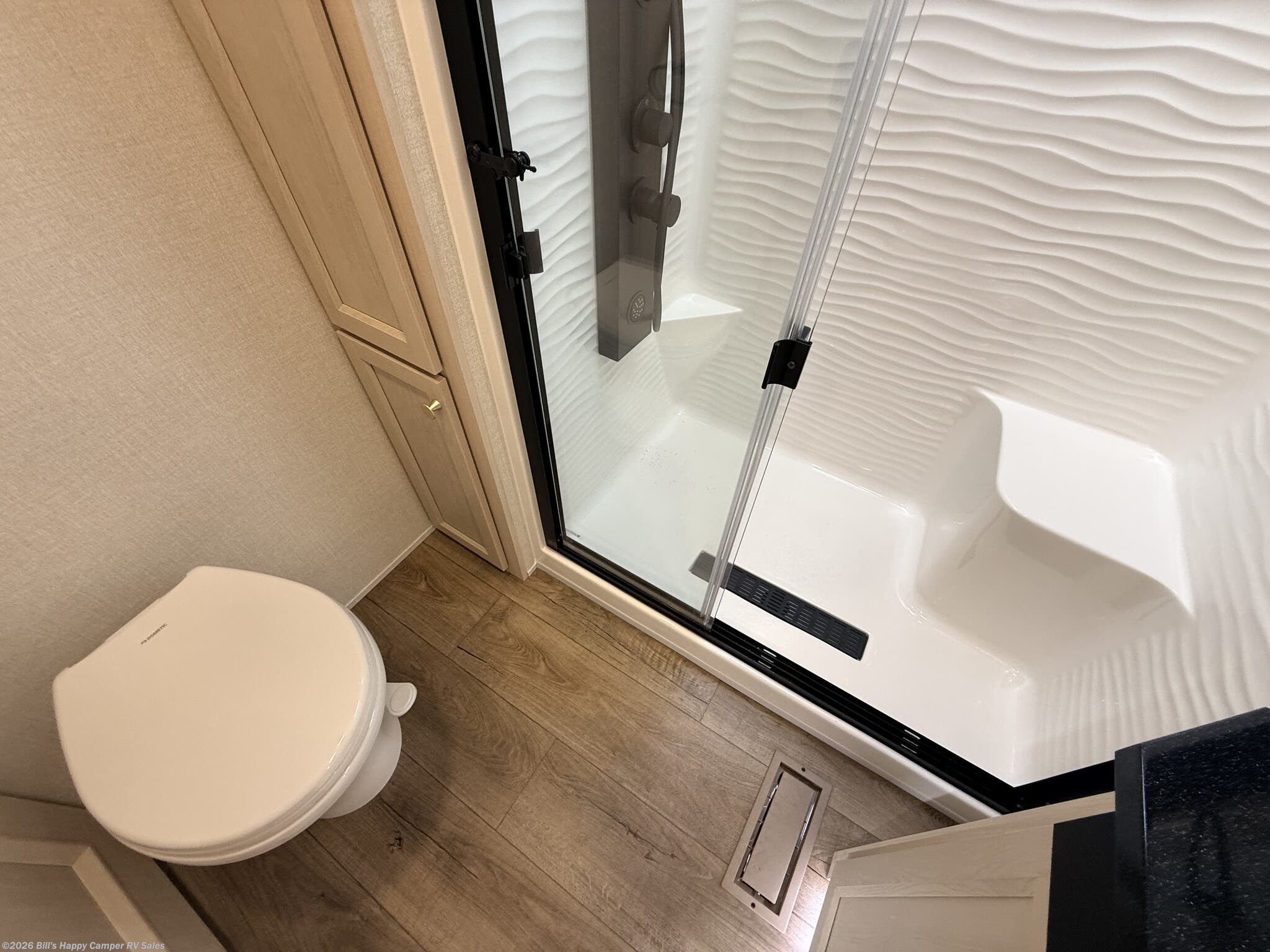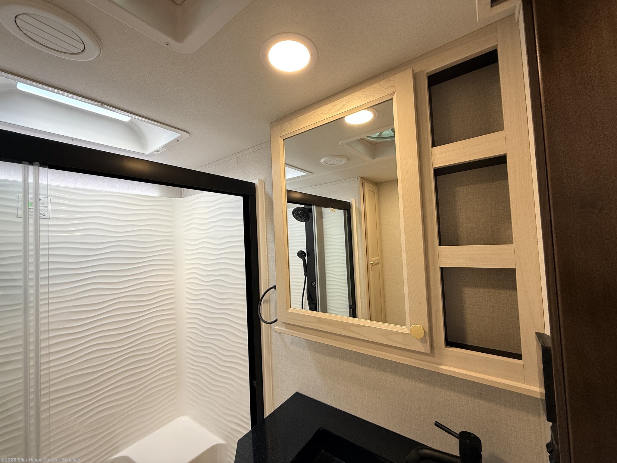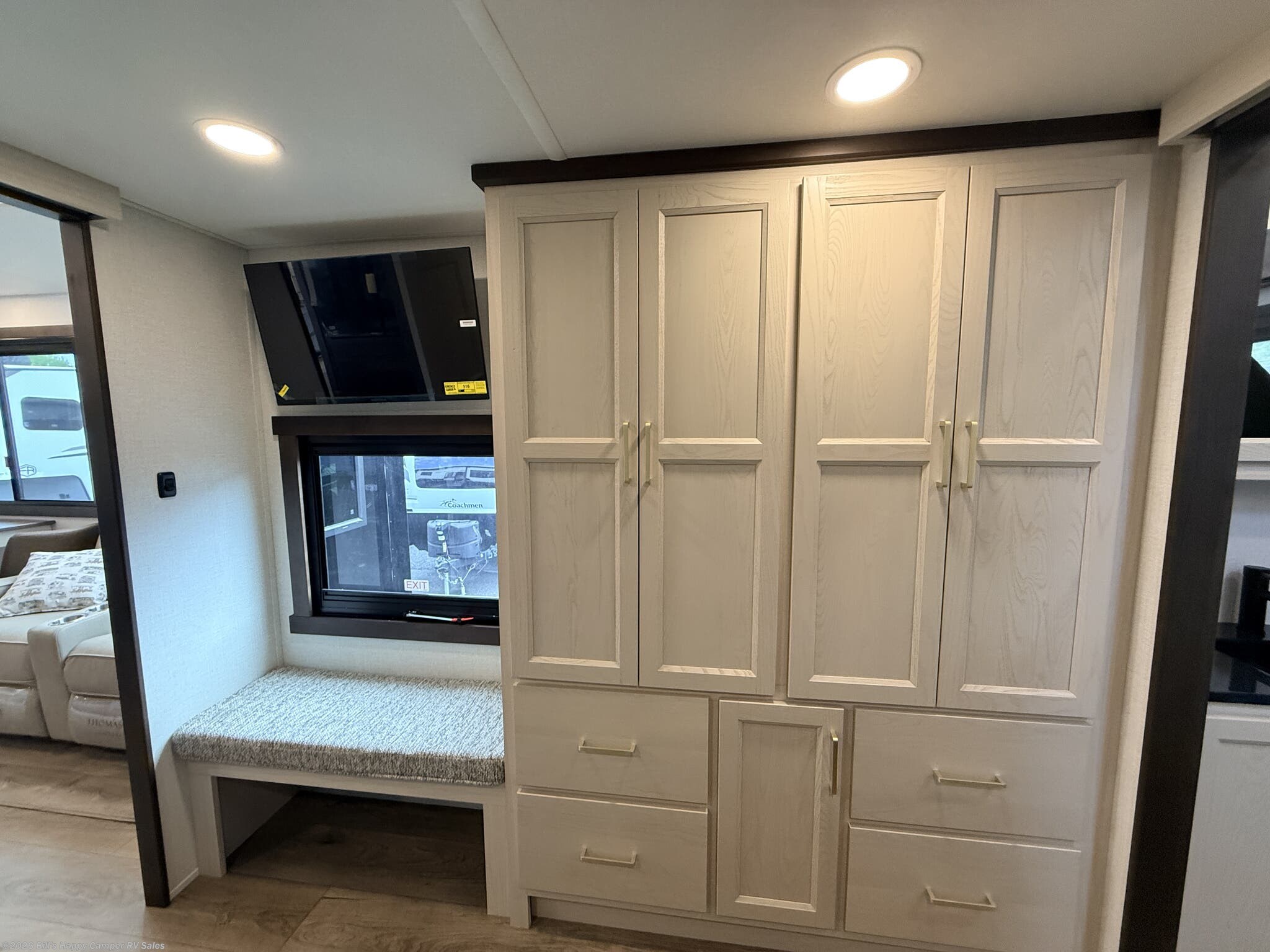 This 2026 Forest River Cedar Creek 38DB is the perfect rig for your adventures and explorations. Ready to be a proud Forest River owner? This 2026 Forest River Cedar Creek 38DB is the perfect fit. If you’re looking for a family RV, you’ve found it: this rig sleeps 6. You won’t believe how big this RV feels with 4 slides. Entertain or cook up a cozy meal just for you in this RV kitchen equipped with the fridge, oven, stove. The theater seating and , or TV make it easy to spend time together as a family. Traveling couples love this rig thanks to the king size bed. Keep a comfortable temperature inside your rig with the heating option. The 75 gallon fresh water tank is just right for easy RV traveling. While the inside of this rig is enough on its own, the outside also features automatic leveling jacks, awning, black tank flush, enclosed underbelly, external shower, fiberglass sidewalls, heated underbelly, hitch, leveling jacks, pass thru storage, power awning, powered landing legs, screen door, second roof a/c, skylight, slam latch baggage doors, slideout, spare tire kit and tinted windows. Wash up from your adventures with the outside shower. Store all the gear you need for your travels with the spacious pass-through storage underneath.
