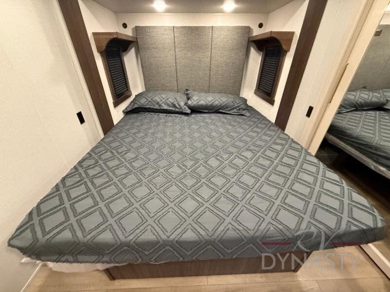 With any Cedar Creek fifth wheel by Forest River, you will find a quality-built RV with your comfort in mind! The all-aluminum super structure on 16" centers or less will provide a solid foundation to your fifth wheel, and the 3M bonded sidewalls will hold up and provide resistance to UV, heat, cold moisture, and even highway chemicals. Each model also includes a Road Warrior suspension for smooth towing, a 6-Point Hydraulic ,GEN 3 Leveling System, and a new 101" wide body frame. Inside, you'll enjoy walnut/two tone wooden cabinetry with hidden hinges, cutting board drawer with cut-out trash funnel, motion lighting in the bath and bedroom closet, plus many more comforts. The New Travelfiâ„¢ Pay-as-you go internet provides the ability to bring your own internet rather than relying solely on campground WiFi, and the "Rich Solar" 200W solar panel will give you off-grid capabilities!