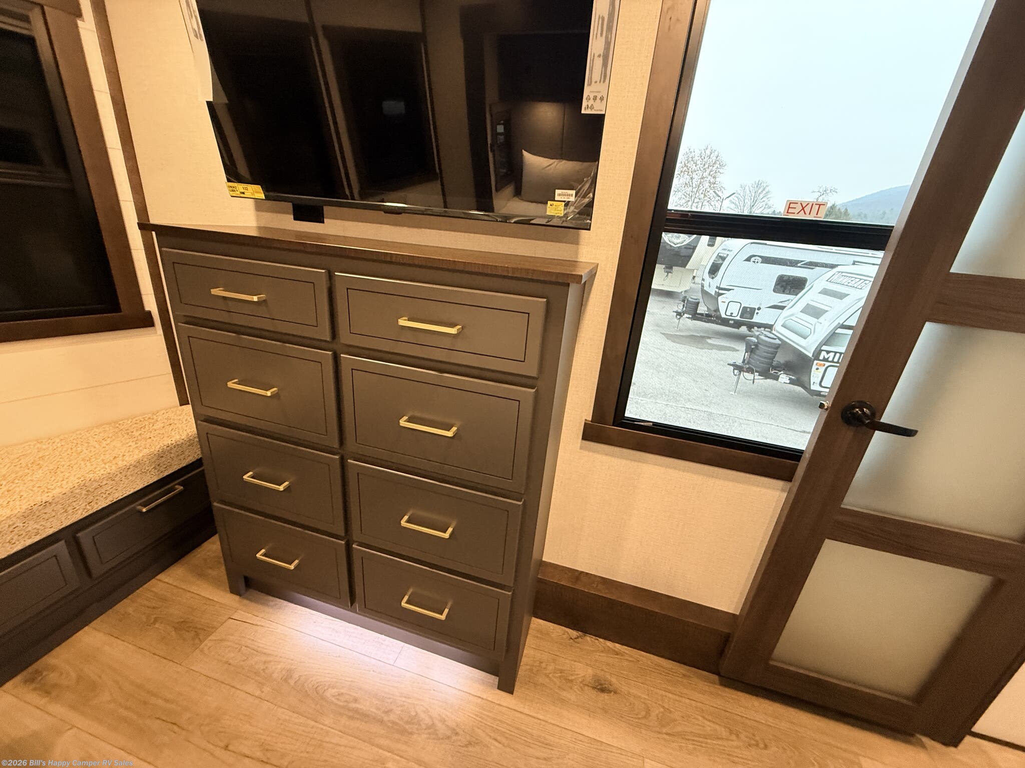 The campground will feel like home in this 2026 Forest River Cedar Creek 412FWC. Be a part of the Forest River family with this 2026 Forest River Cedar Creek 412FWC. The sleep capacity allows you to bring up to 2 along on your travels in this rig. With three slides, this rig feels roomy and spacious inside. Cook up the best camping meals with appliances like the fridge, oven, stove. Kick back and relax in the living area with the TV. Traveling couples love this rig thanks to the king size bed. The heating option will keep your travels at the perfect temperature. If you’re thinking of heading off grid, this rig has a 75 fresh water tank. The exterior features make camping a breeze, such as awning, enclosed underbelly, fiberglass sidewalls, heated underbelly, power awning, powered landing legs, screen door, second roof a/c, slideout, stabilizer jacks and tinted windows.